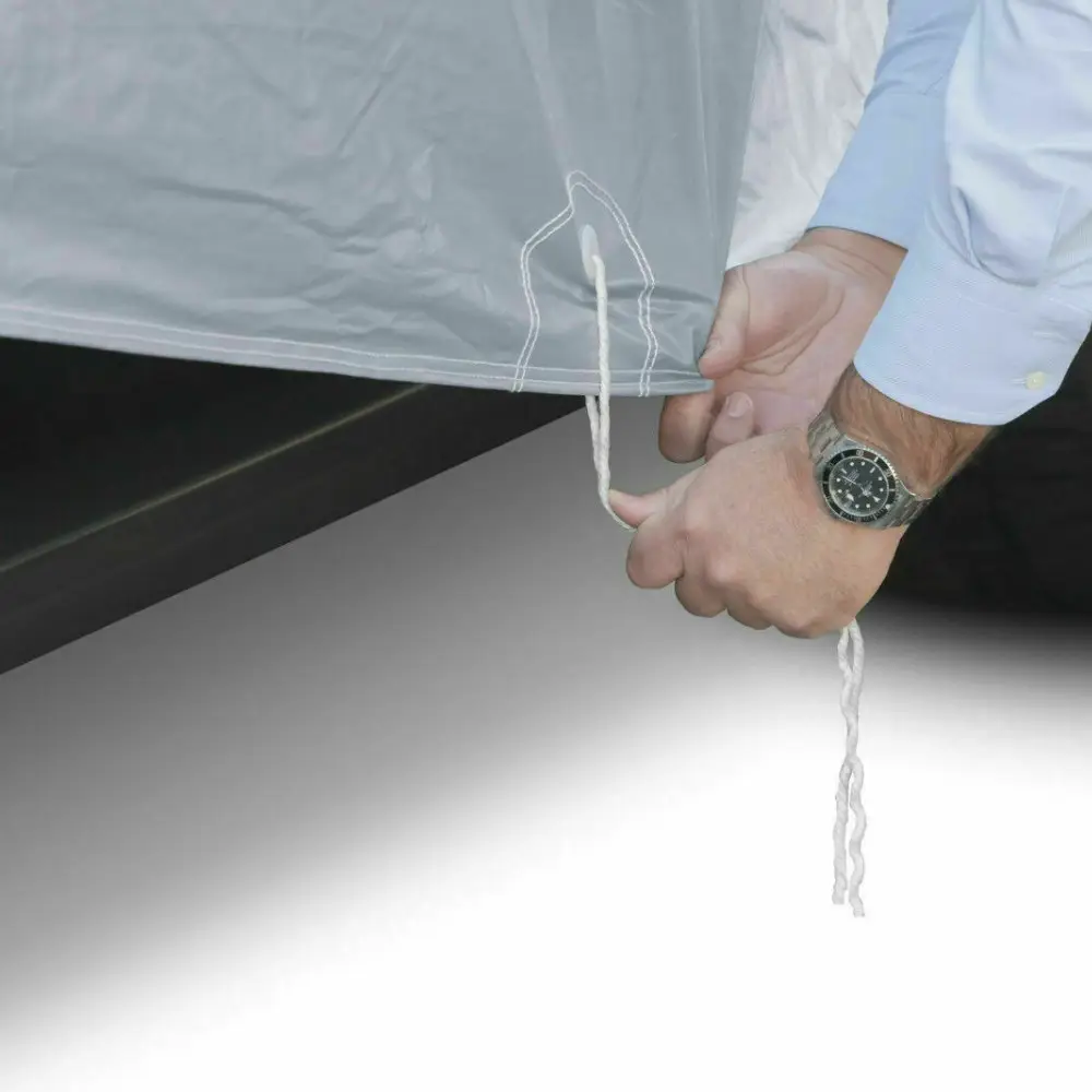 Тент виготовлений із міцного, водовідштовхувального матеріалу, стійкого до розривів та ультрафіолетового випромінювання. Це дозволяє використовувати його в будь-яку пору року — як улітку для захисту від сонця, так і в міжсезоння від дощу та вітру. Завдяки універсальному розміру накидка підходить для більшості седанів і легко фіксується на кузові.