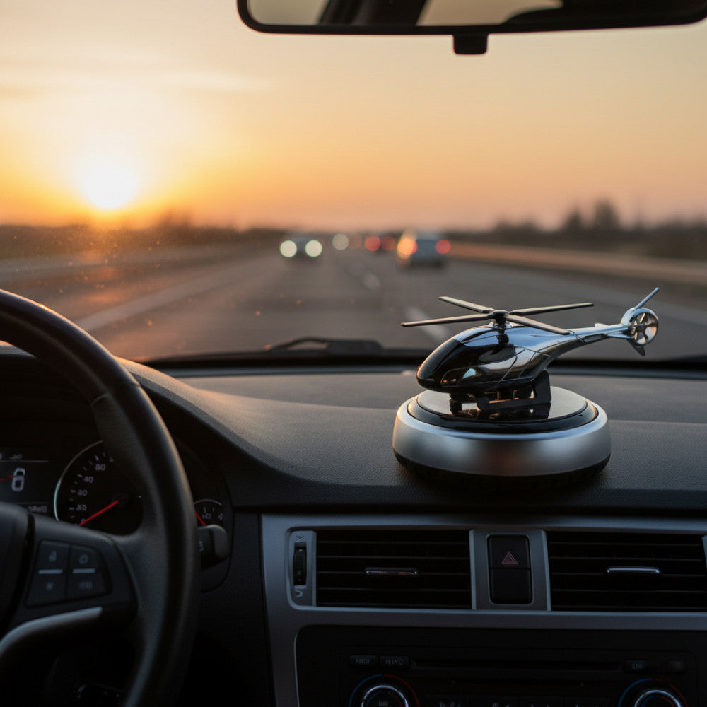 Автомобільний ароматизатор вертоліт з роздуванням на сонячній панелі + багаторазове просочення парфуми, Сріблястий / Ароматизатор