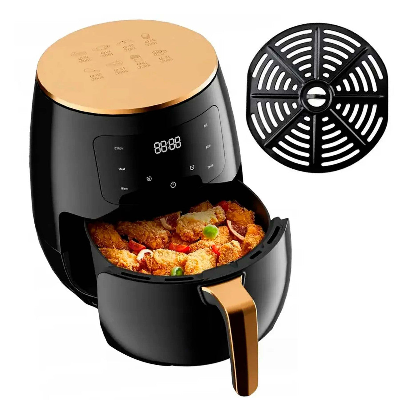 Фритюрниця без олії об'ємом 6 літрів і потужністю 2600 Вт - це інноваційний пристрій для здорового та смачного приготування їжі за допомогою технології гарячого повітря. Вона призначена для готування без використання олії або з мінімальною його кількістю, що робить страви дієтичнішими та кориснішими.