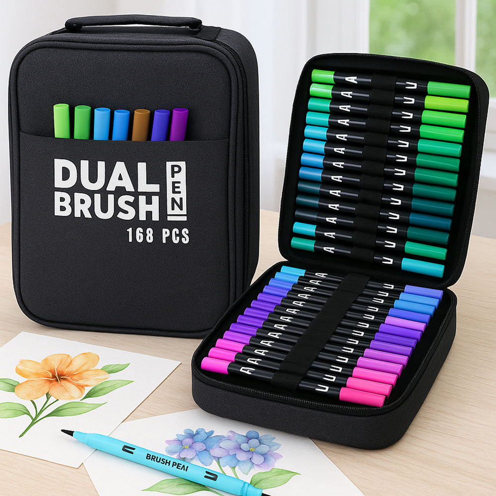 Акварельні маркери двосторонні 168шт з сумкою, Color pencil / Набір для малювання / Маркери для малювання