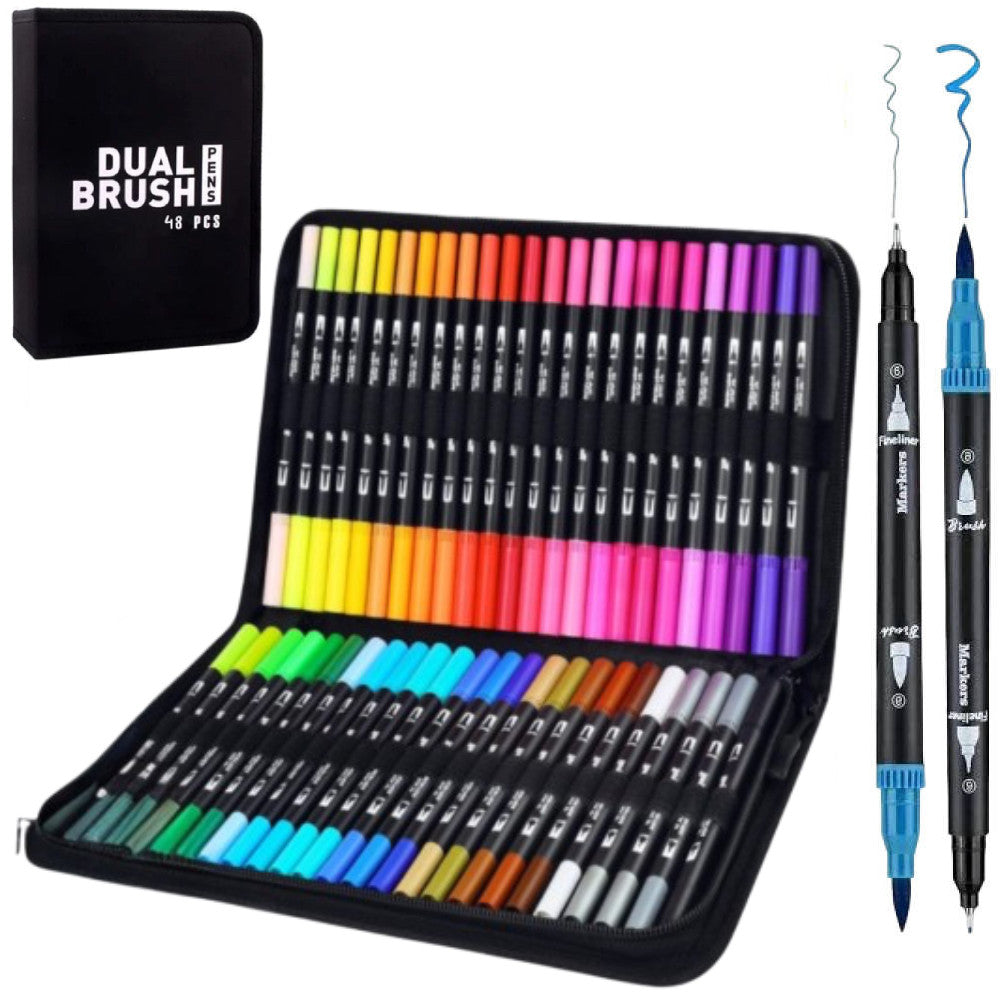 Акварельні маркери двосторонні 48шт з сумкою, Color pencil / Набір для малювання / Маркери для малювання