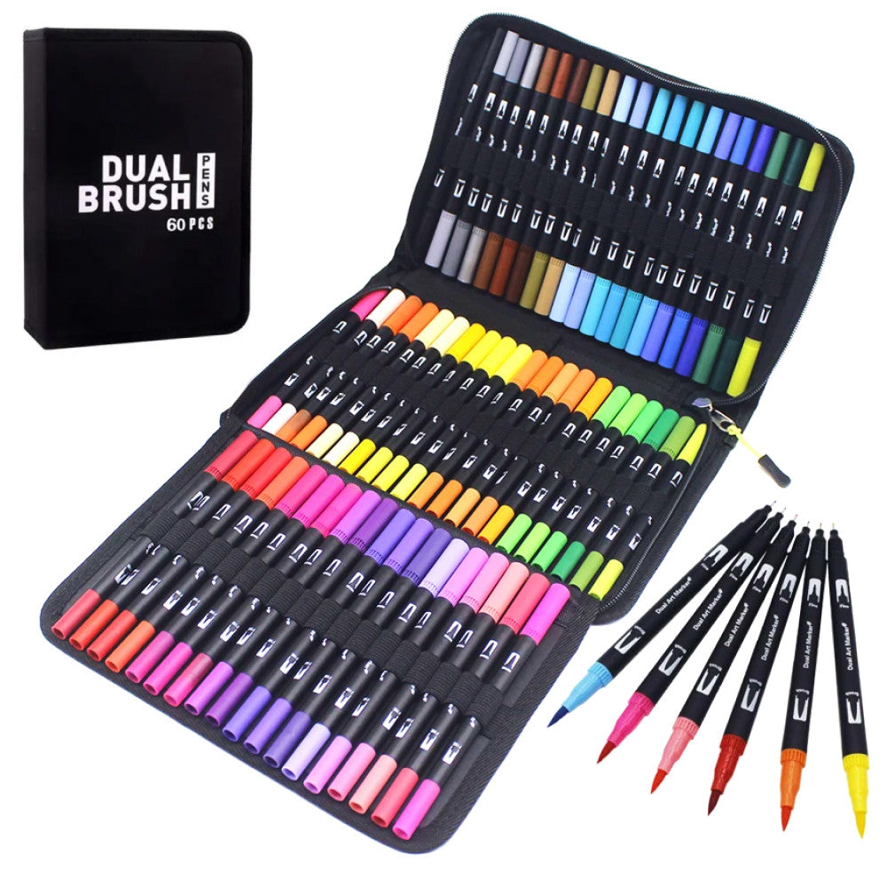 Акварельні маркери двосторонні 60шт з сумкою, Color pencil / Набір для малювання / Маркери для малювання