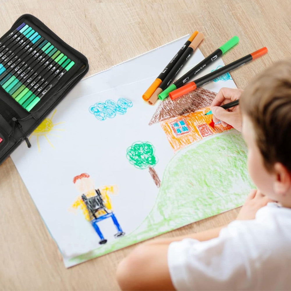 Набір для малювання із сумкою від Color Pencil - це ідеальний інструмент для художників, дизайнерів, студентів та любителів малювання. Ці маркери пропонують широкий спектр кольорів та забезпечують відмінну якість акварельного ефекту, дозволяючи створювати яскраві та насичені малюнки.Один кінець маркера оснащений пензликом для нанесення широких мазків та заливок, інший – тонким наконечником для деталізованої роботи та контурів.