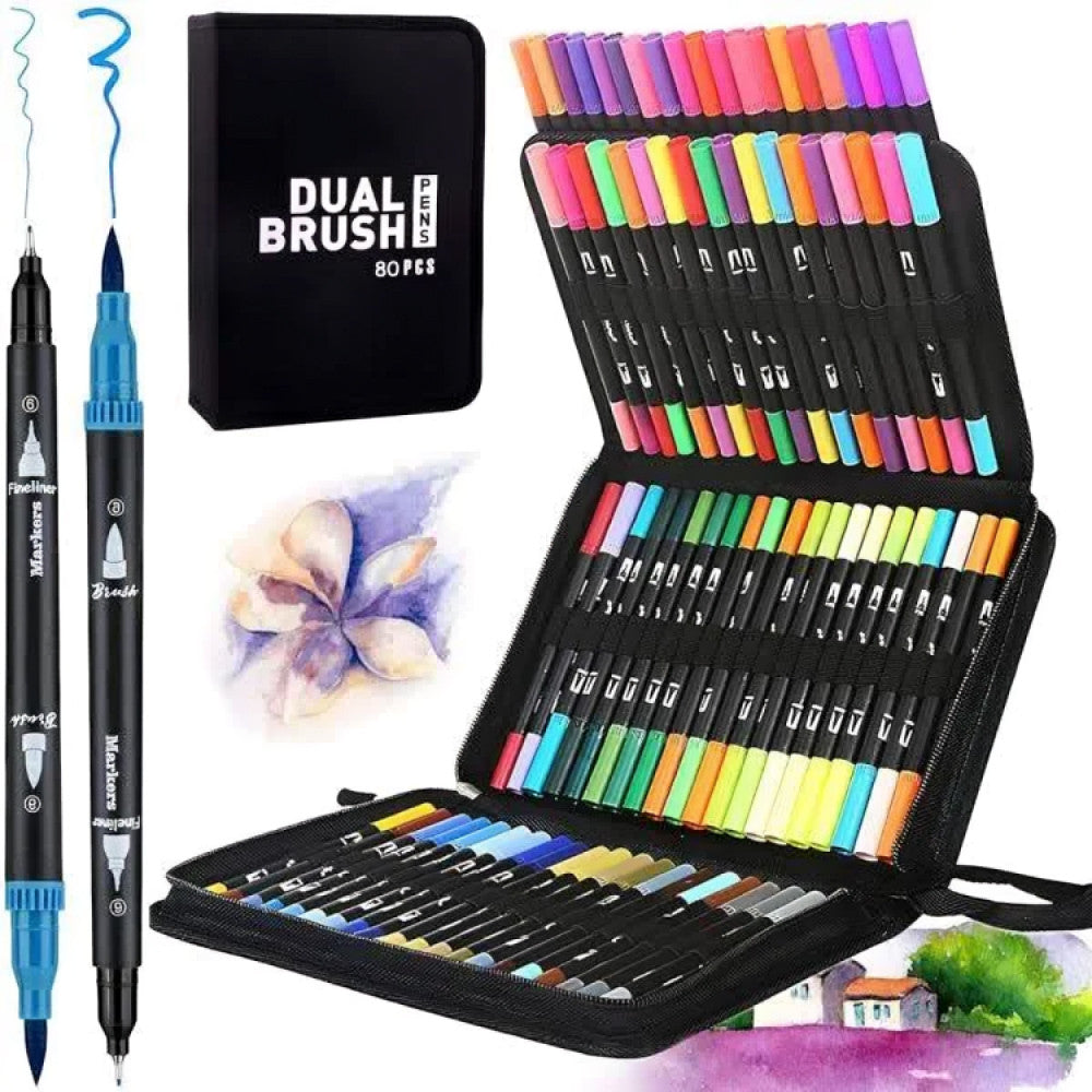 Акварельні маркери двосторонні 80шт з сумкою, Color pencil / Набір для малювання / Маркери для малювання
