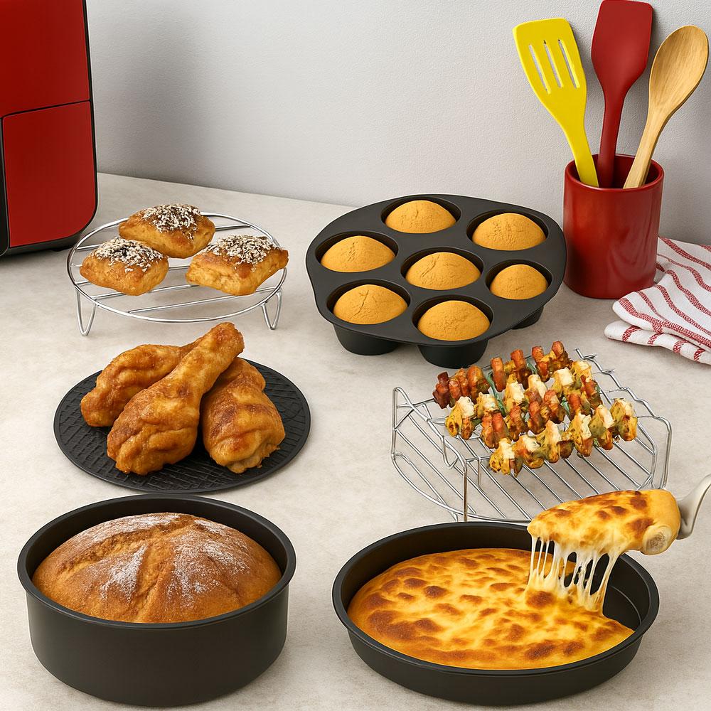 Аксесуари для аерофритюрниці 8 дюймів, 11 в 1 / Аксесуари для аерогрилю / Набір аксесуарів для мультипечі