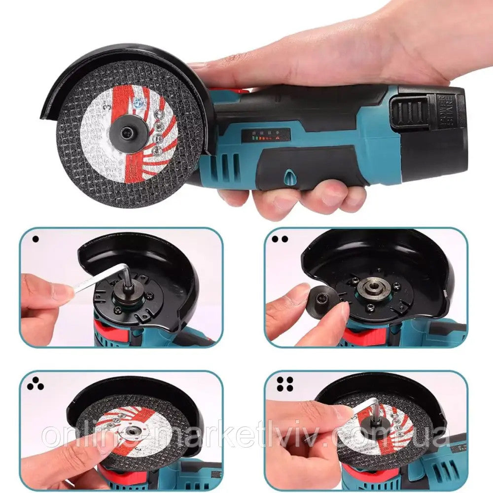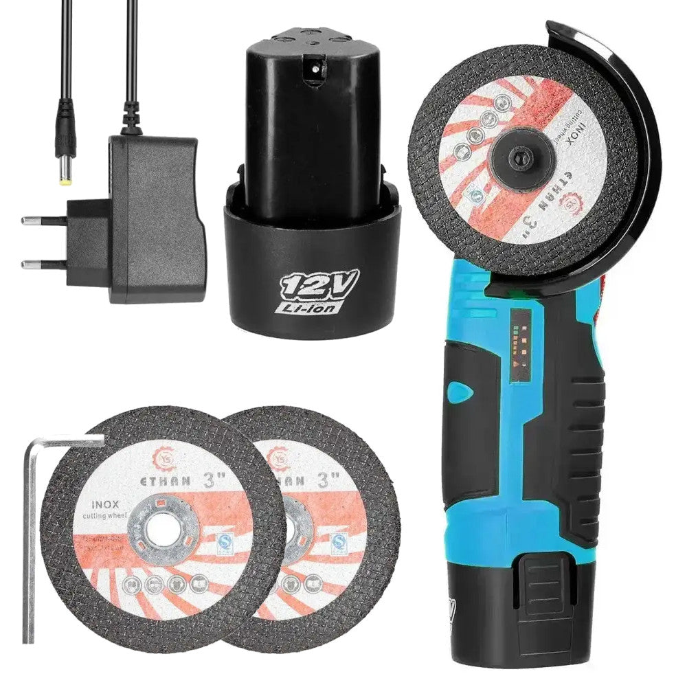 Акумуляторна болгарка + 2 диски, 1 акумулятор 12V / Електроболгарка для дому / Міні болгарка / УШМ