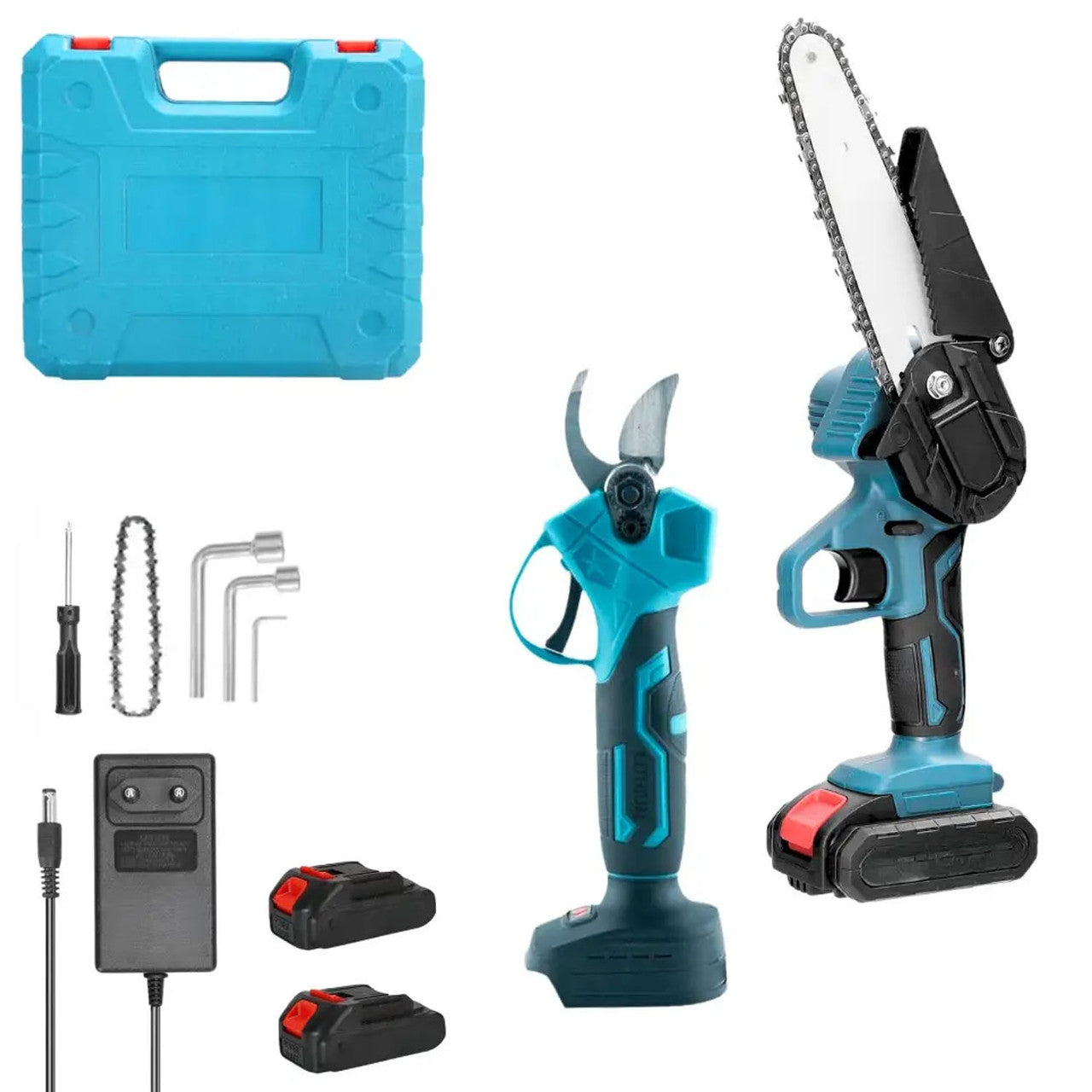 Акумуляторна ланцюгова пилка + секатор для обрізки дерев 21V, 2 акумулятори / Бездротова пилка