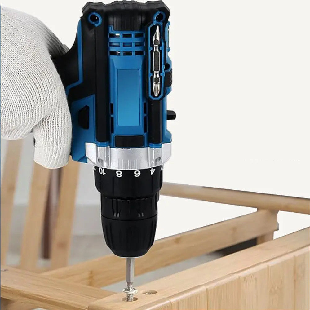 Цей акумуляторний шуруповерт стане вашим вірним помічником у будь-яких завданнях: від дрібного ремонту до збирання меблів. Він поєднує в собі високу потужність, виняткову зручність та повну свободу пересування завдяки відсутності проводів. Два акумулятори в комплекті гарантують тривалу роботу без перерв на підзарядку. Ергономічна рукоятка з прогумованим покриттям забезпечує комфортне захоплення та знижує втому навіть при тривалому використанні.