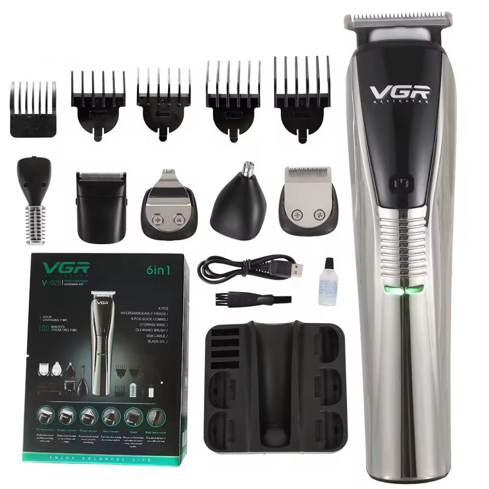 У комплект входять 6 насадок для стрижки волосся, бороди, вусів, носа і вух, що робить його універсальним інструментом для комплексного догляду. V-029 — це пристрій, який пропонує повний набір інструментів для догляду за волоссям та бородою.