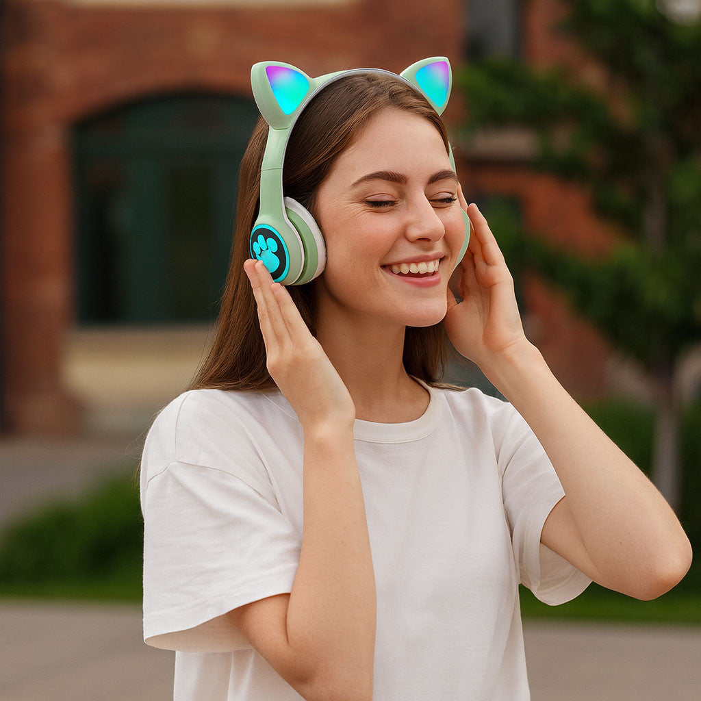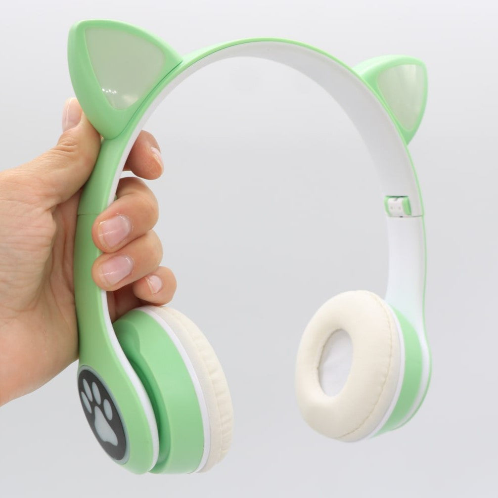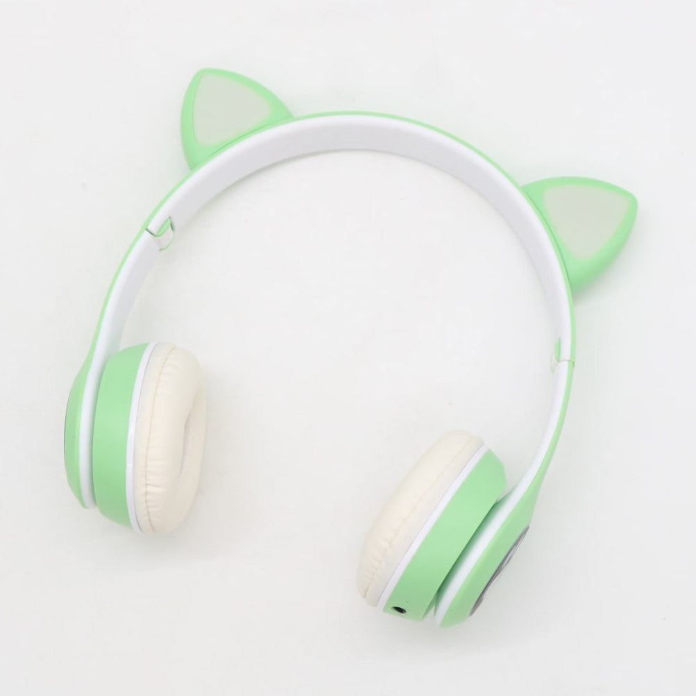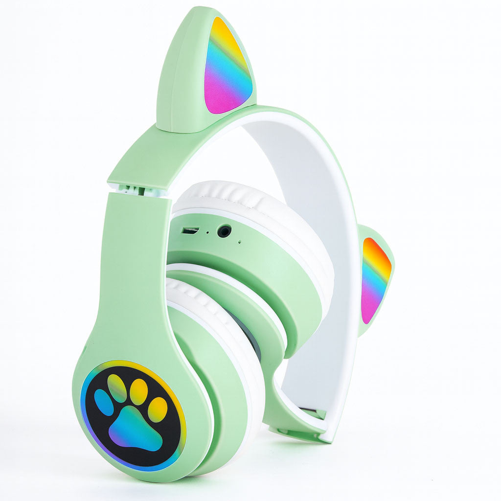 Бездротові навушники Котячі вушка VZV-23M, Зелені / Дитячі навушники з підсвічуванням та мікрофоном