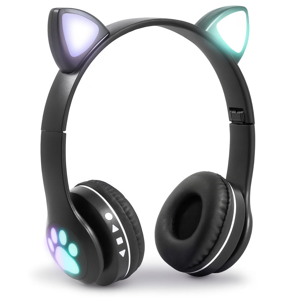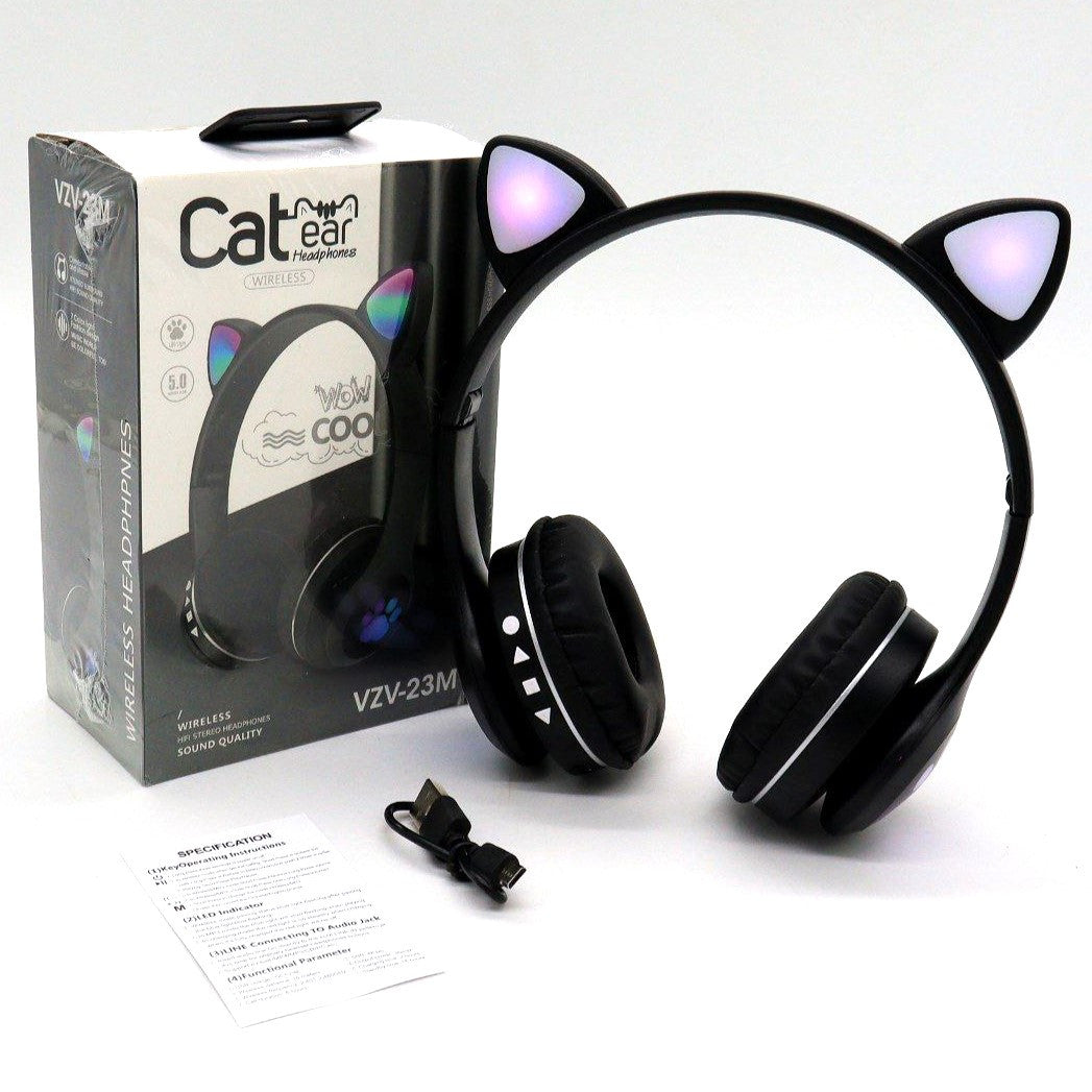 Бездротові навушники Котячі вушка VZV-23M, Чорні / Дитячі навушники з підсвічуванням та мікрофоном