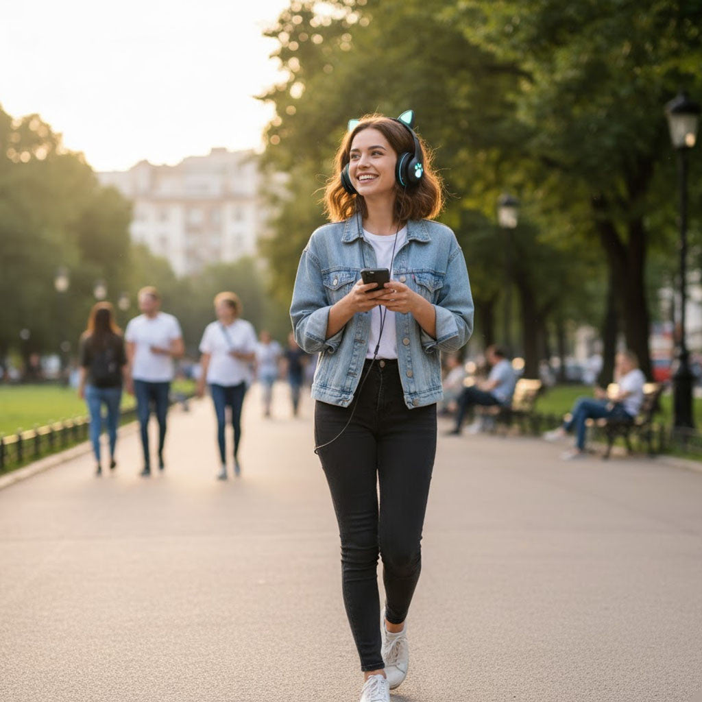 Завдяки широкому частотному діапазону на 20 - 2000 кГц, навушники з вушками дають високу якість звуку, що програється, будь-яких тональностей, незалежно від музичного виконання і жанру. Є відмінна можливість регулювання висоти навушників. Тепер навіть дорослому вони будуть якраз. М'яка поліуретанова подушечка накладних навушників, сприяє кращій звукоізоляції та комфортному носінню.