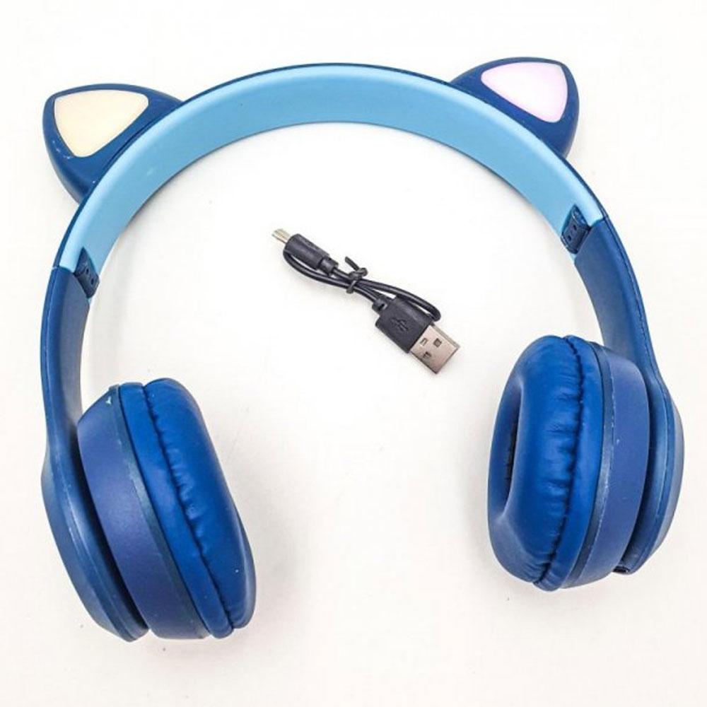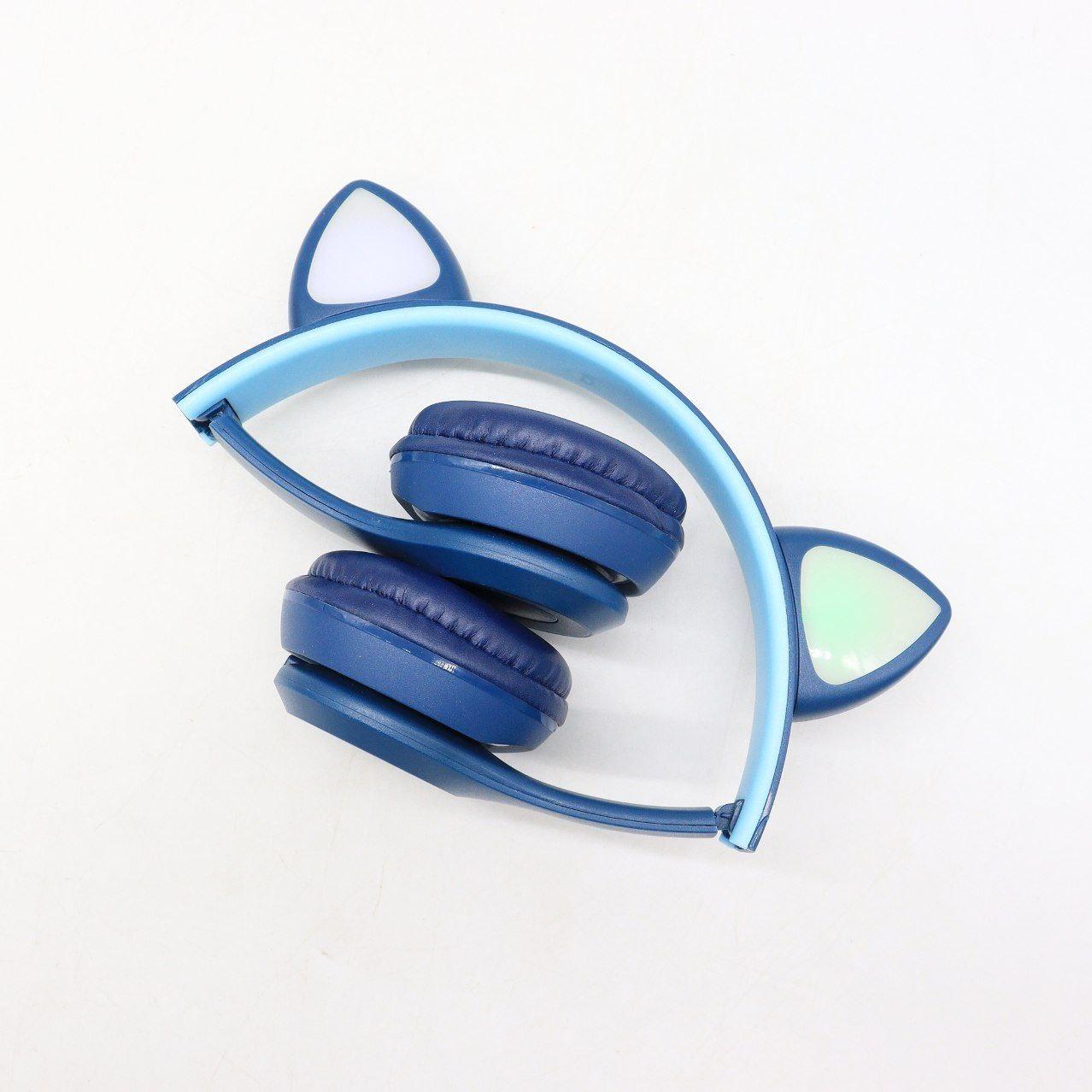 Бездротові Bluetooth навушники з котячими вушками та підсвічуванням Cat Miu Star P47 Сині / Дитячі навушники