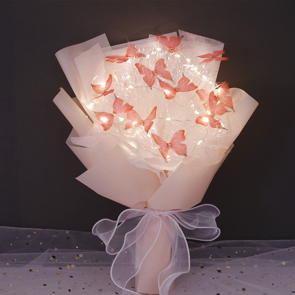 Букет з метеликів з підсвічуванням, від батарейок, Рожевий / Букет з метеликами / Подарунок дівчині