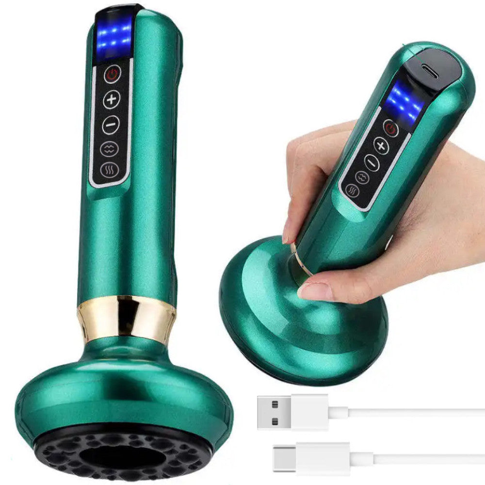 Вакуумний масажер від целюліту з підігрівом та USB, 12 режимів, Зелений / Антицелюлітний масажер для тіла