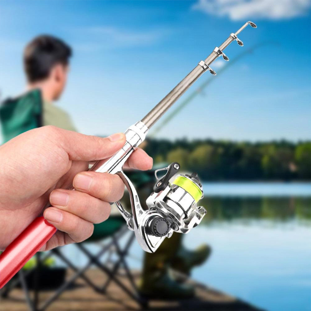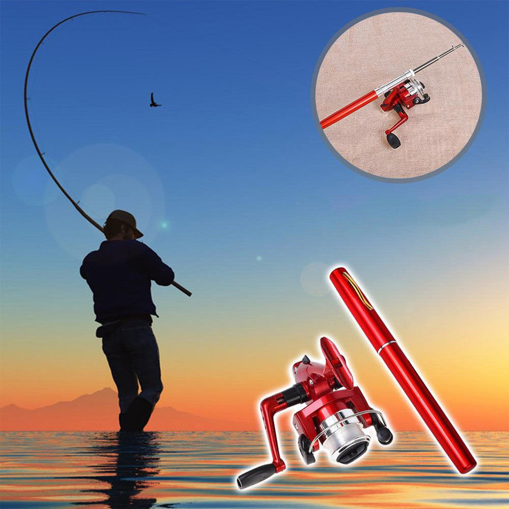 Вудка-ручка з котушкою EL-1220, Червона / Набір рибалки / Кишенькова міні вудка складна, телескопічна
