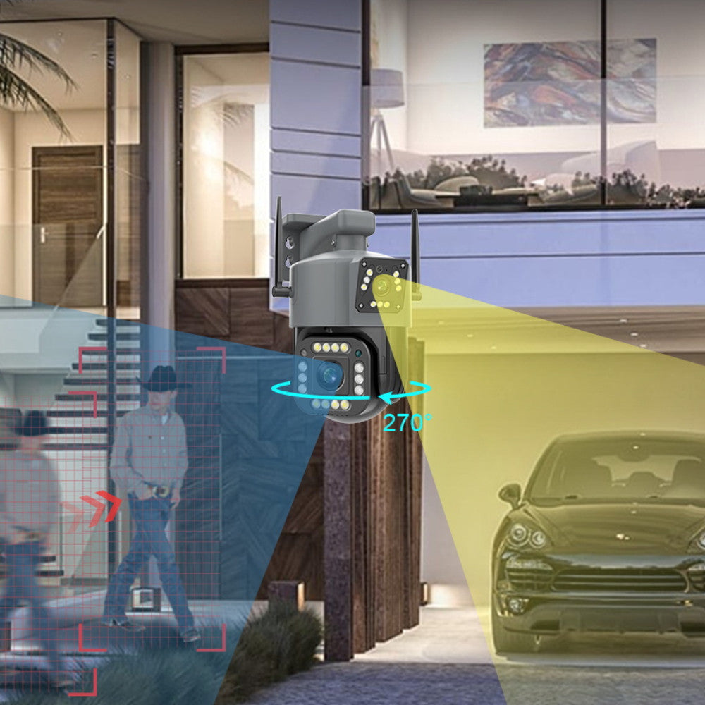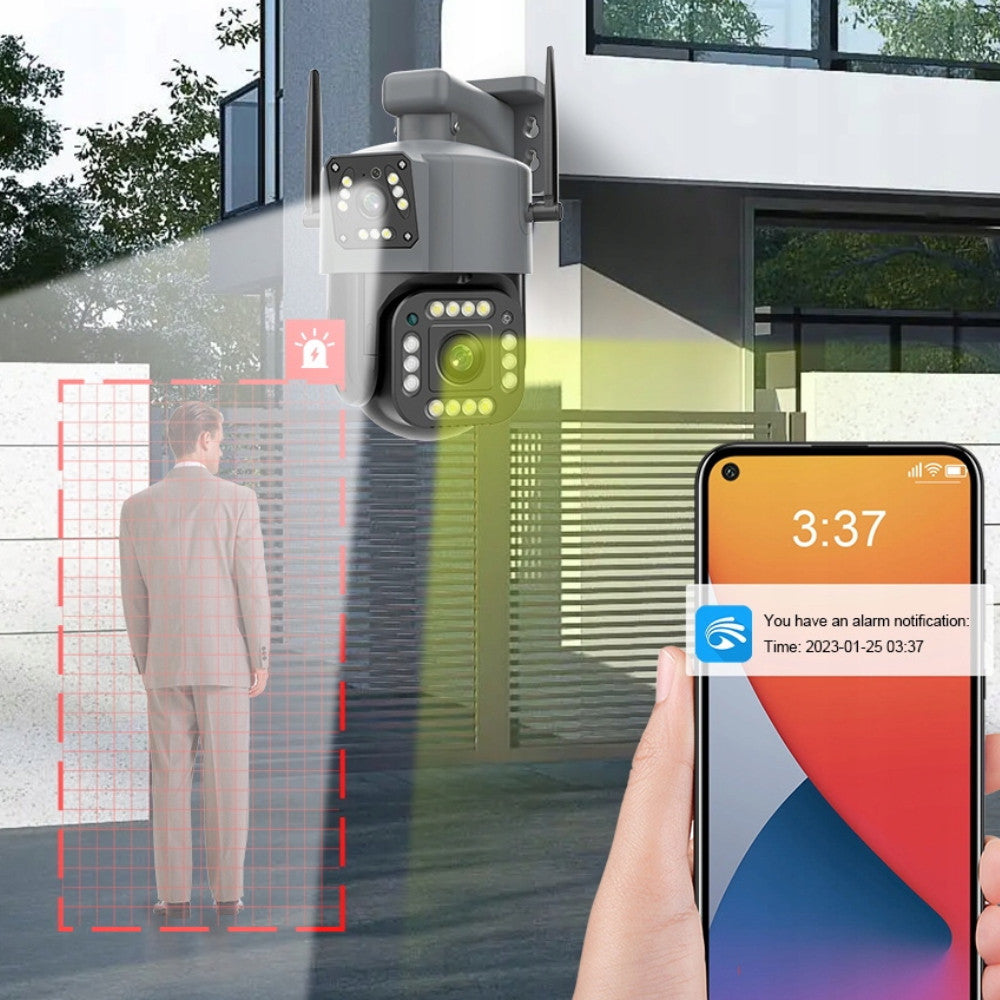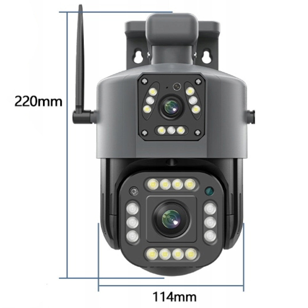 Камера відеоспостереження Qettopo V380 з роздільною здатністю 8 Мп є надійним рішенням для забезпечення безпеки і контролю зовнішнього простору. З двома об'єктивами камера забезпечує широкий кут огляду, що робить її ідеальним вибором для охоплення великих територій. Завдяки бездротовій технології Wi-Fi, встановлення камери стає зручним і гнучким.