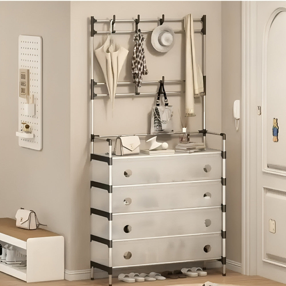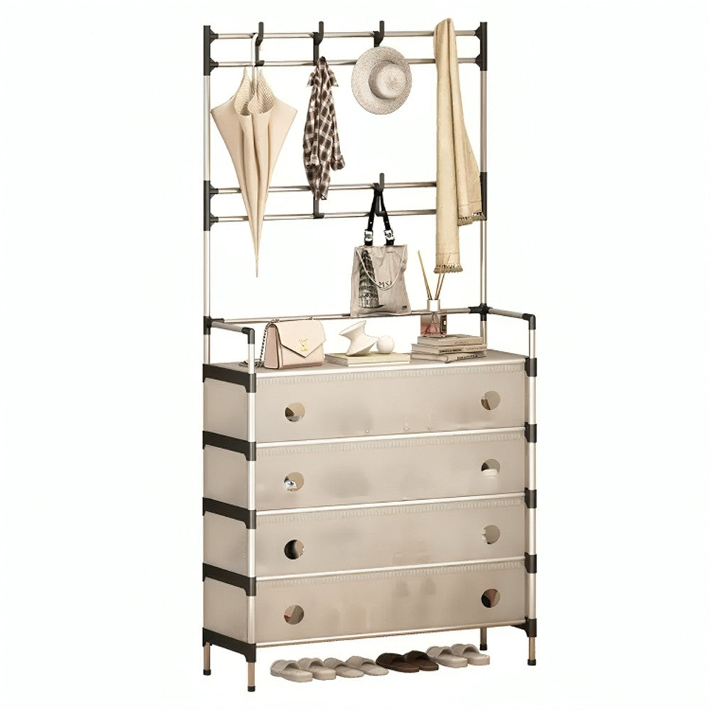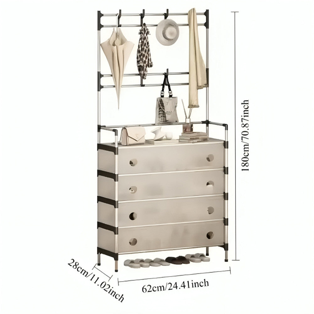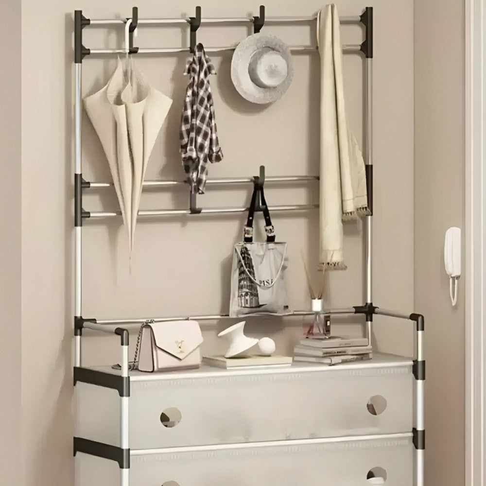 Представляємо вашій увазі універсальну вішалку з полицею для взуття SKLM-27 – ідеальне рішення для підтримки порядку у вашому будинку! Забудьте про розкидане взуття та м'ятий одяг. Із цією вішалкою все буде на своїх місцях.
