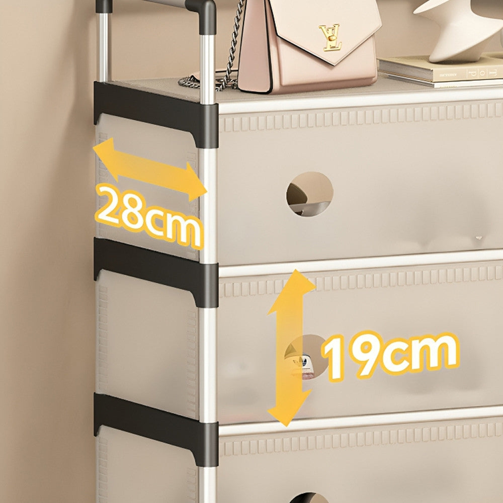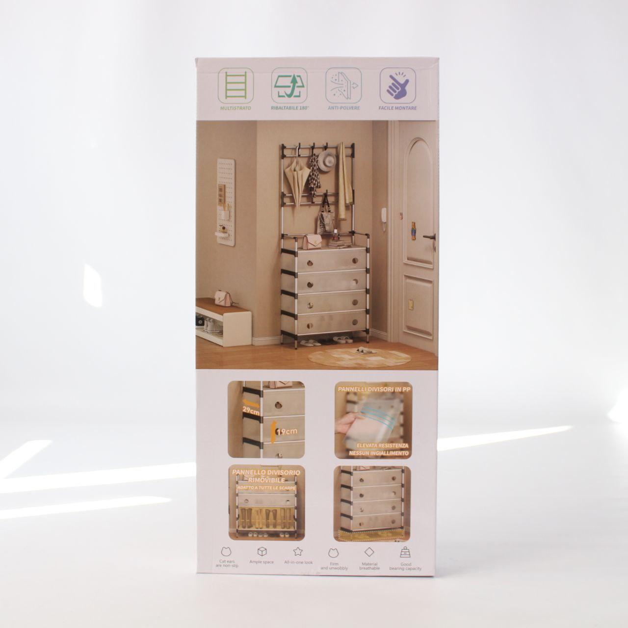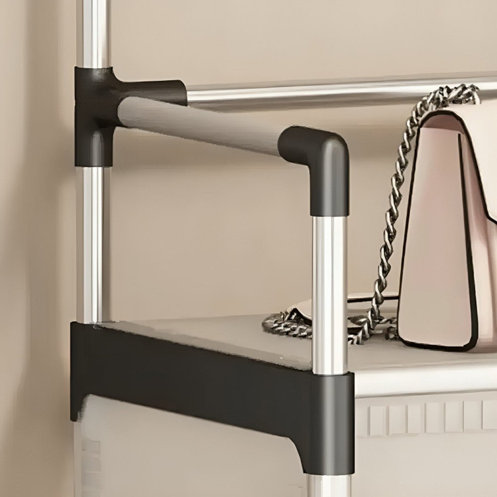 SKLM-27 поєднує стильний дизайн і функціональність. Міцна металева конструкція гарантує довговічність, а кілька полиць дозволяють розмістити все ваше взуття. Вішалка для одягу витримує значну вагу, що дозволяє зберігати верхній одяг, сумки та аксесуари.