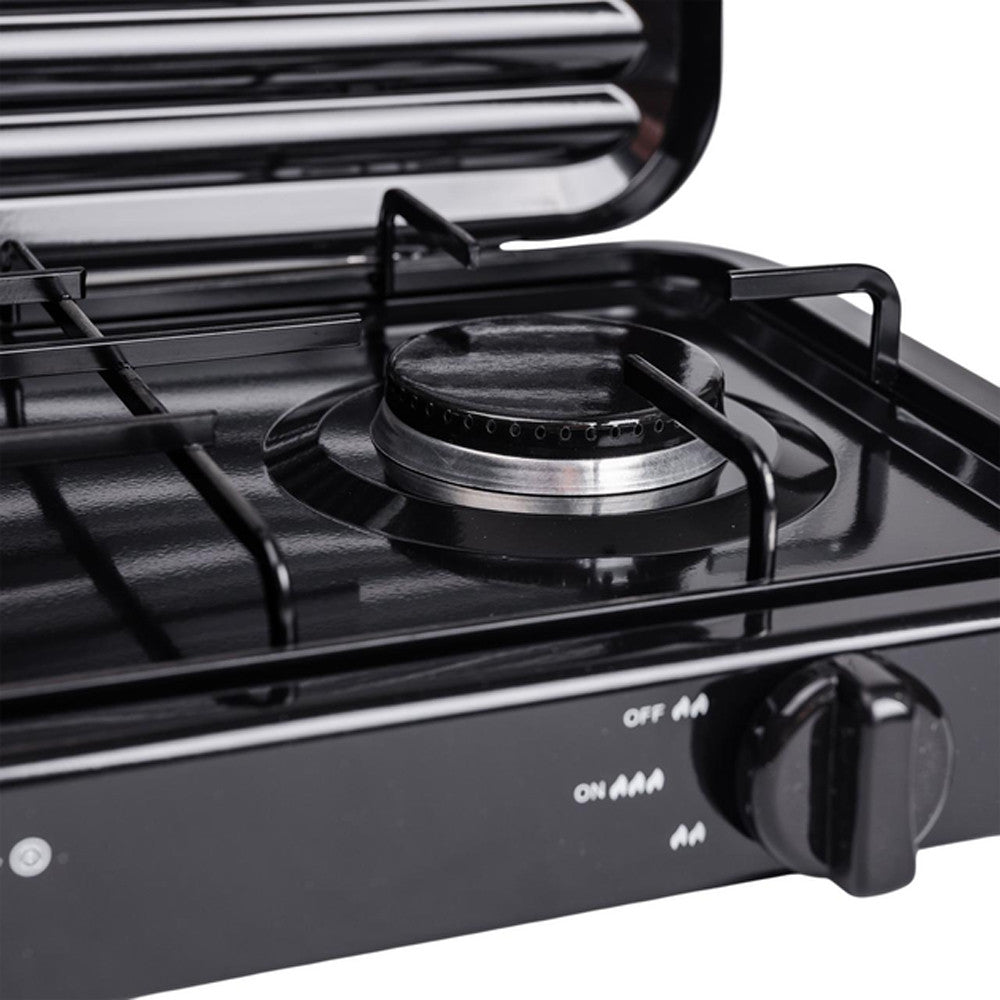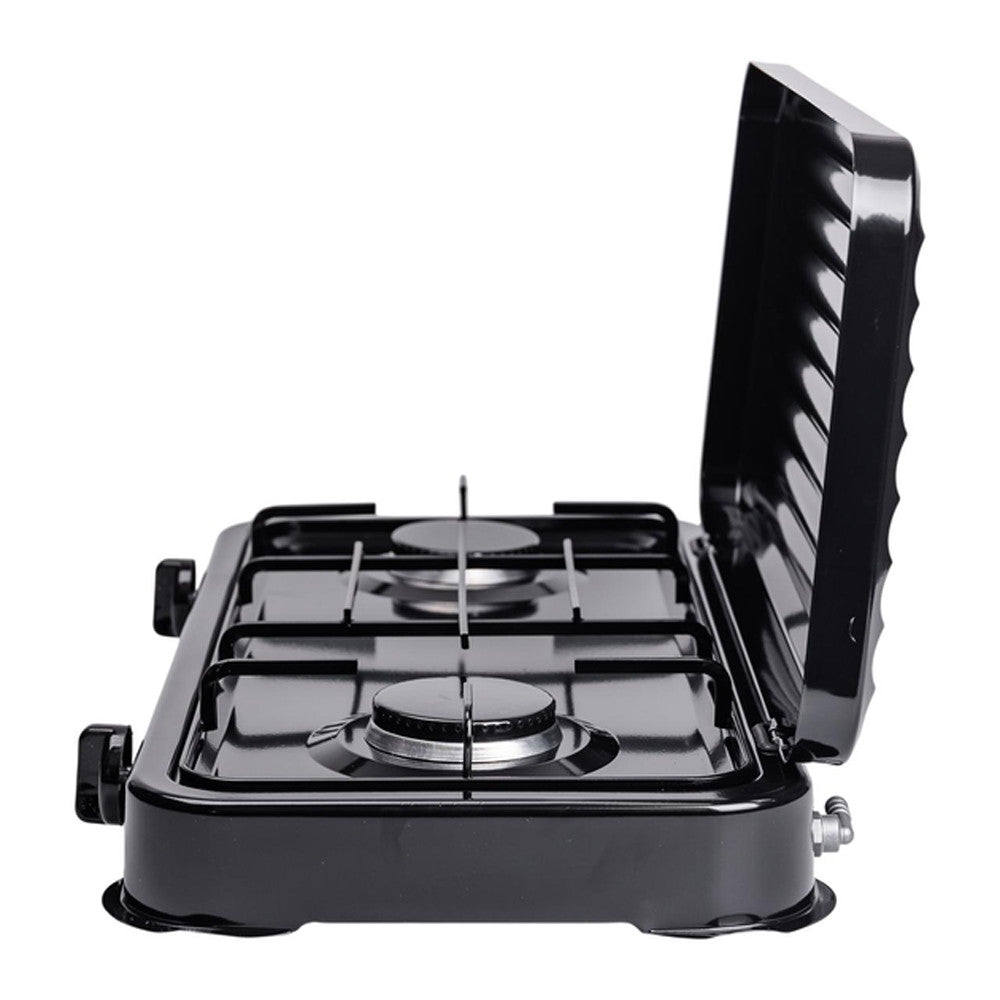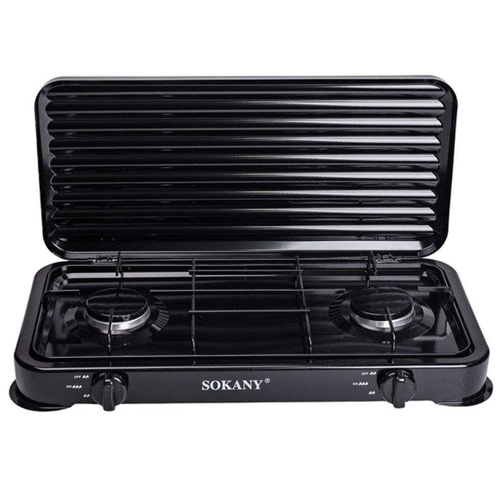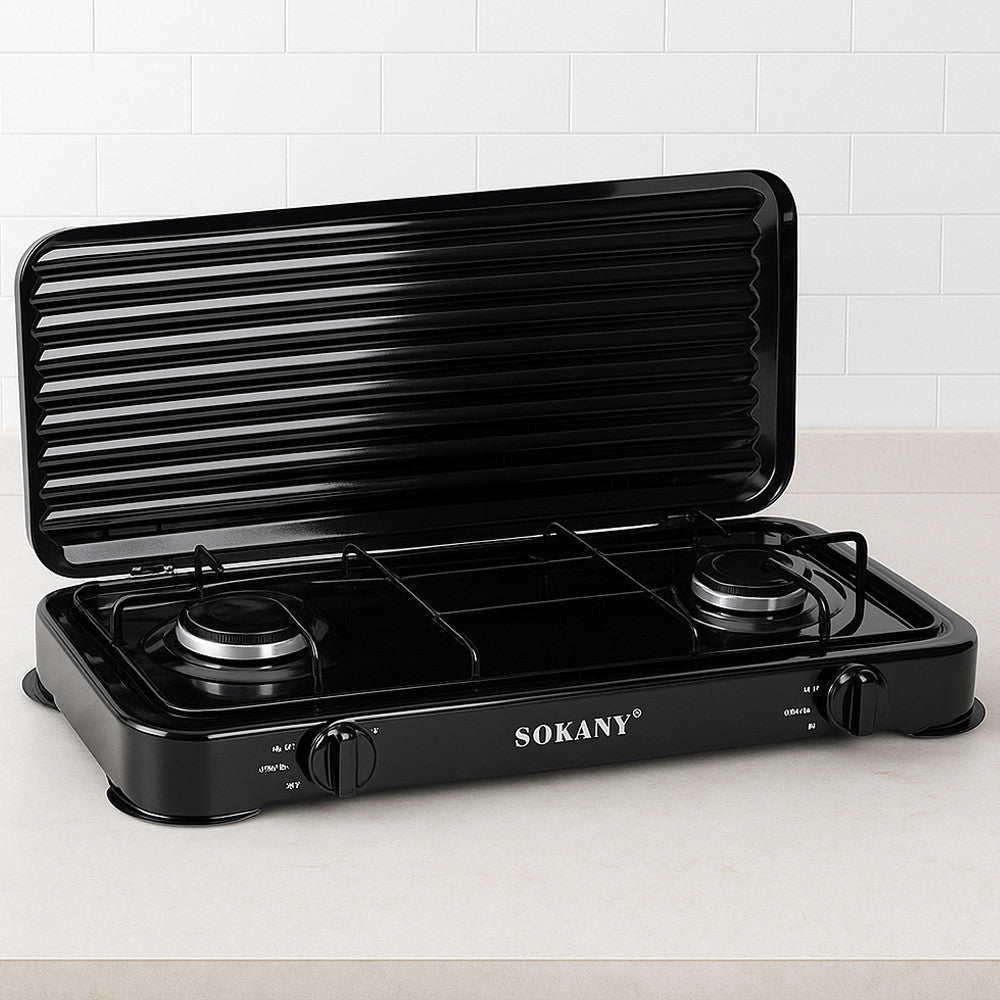 Газова плита 2-х конфоркова з кришкою SGS-6002, 4,4 кВт, чорна / Настільна двоконфоркова плита