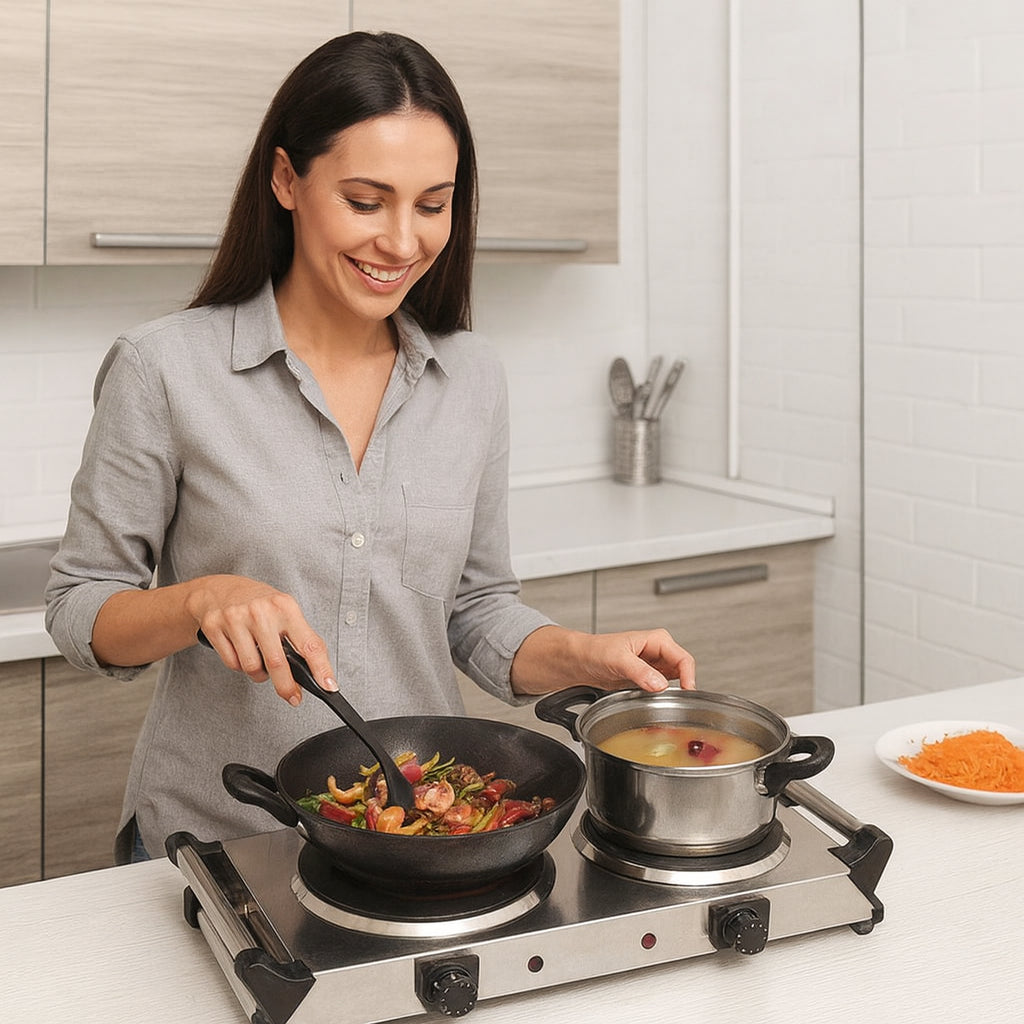 Електрична плита BM-HD04ST – це компактне та ефективне рішення для приготування їжі, що ідеально підходить для невеликих кухонь, дач або гуртожитків.