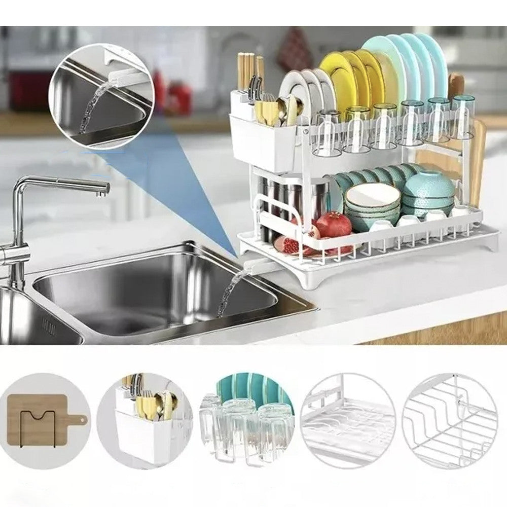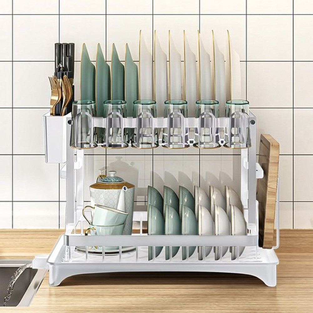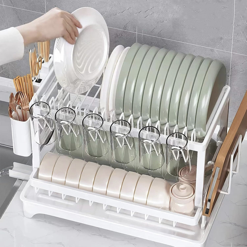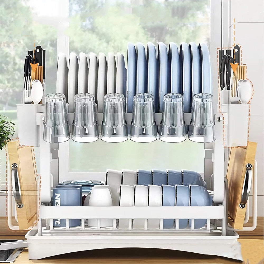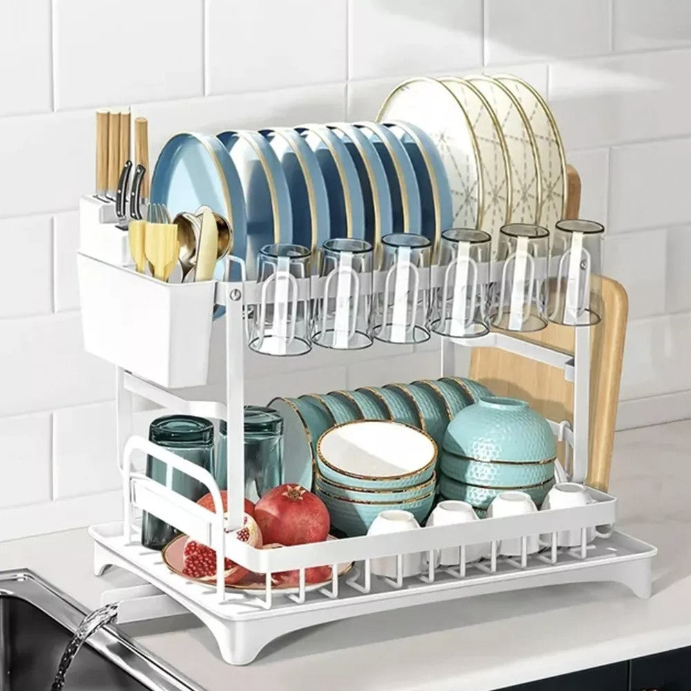 Двоярусна сушка для посуду 42x25x39 см, A19, Білий / Настільна сушарка для посуду / Органайзер для посуду