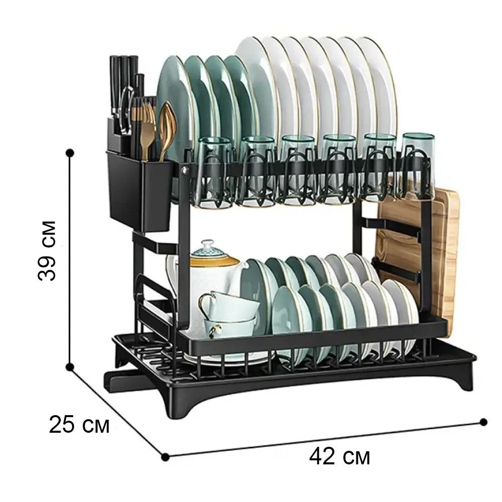 Двоярусна сушка для посуду 42x25x39 см, A19, Чорний / Настільна сушарка для посуду / Органайзер для посуду