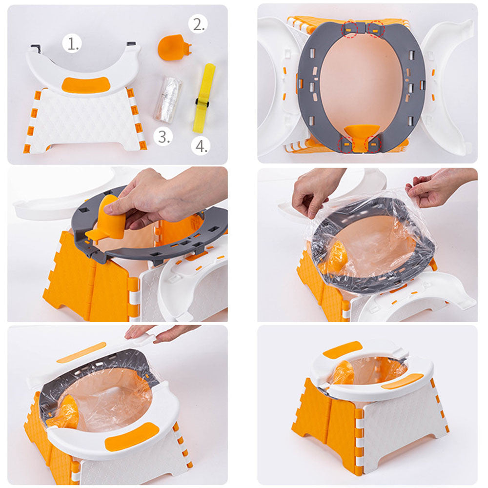 Дитячий переносний складаний туалет, Біло-жовтогарячий / Дитячий дорожній складаний горщик