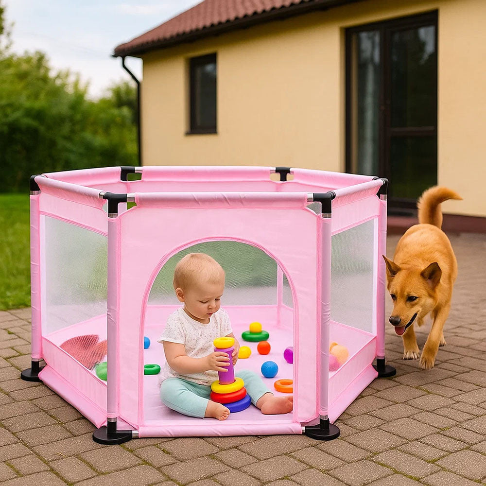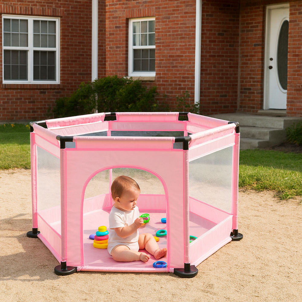 - Складаний дитячий манеж-шестигранник із сітчастою огорожею