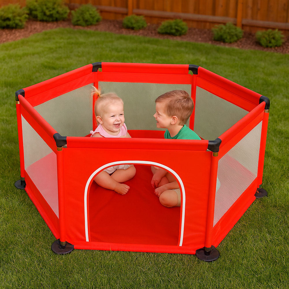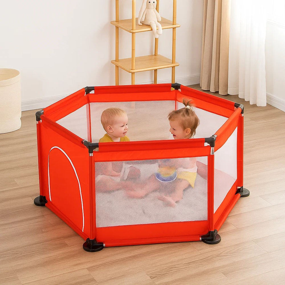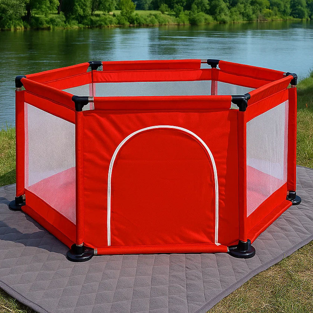 - Складаний дитячий манеж-шестигранник із сітчастою огорожею