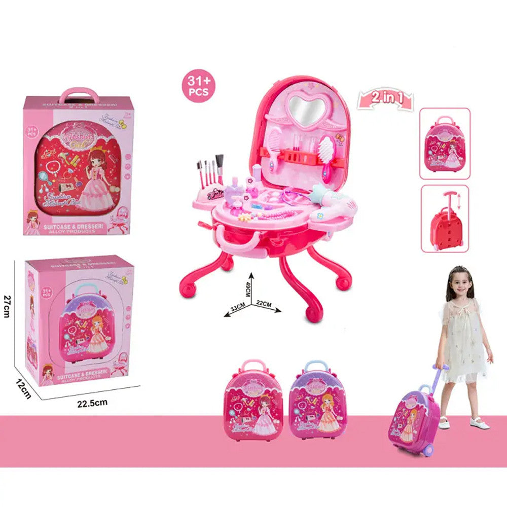 Дитячий ігровий набір у валізці 2в1, 31 предмет, Fashion Girl / Дитяче трюмо у валізці