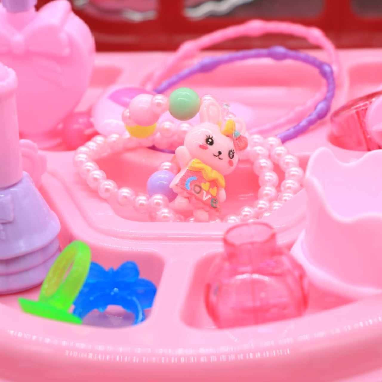 Дитяча валізка "Fashion Girl" зберігає в собі багато цікавого і захоплюючого - це і аксесуари для волосся (іграшковий фен і гребінець), іграшкові прикраси (буси, браслети та кільця), а також флакончики і баночки, що імітують духи, губну помаду і засоби серця.