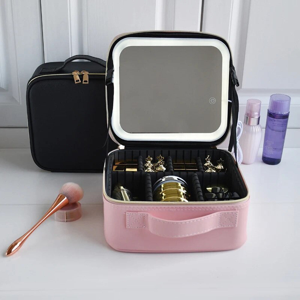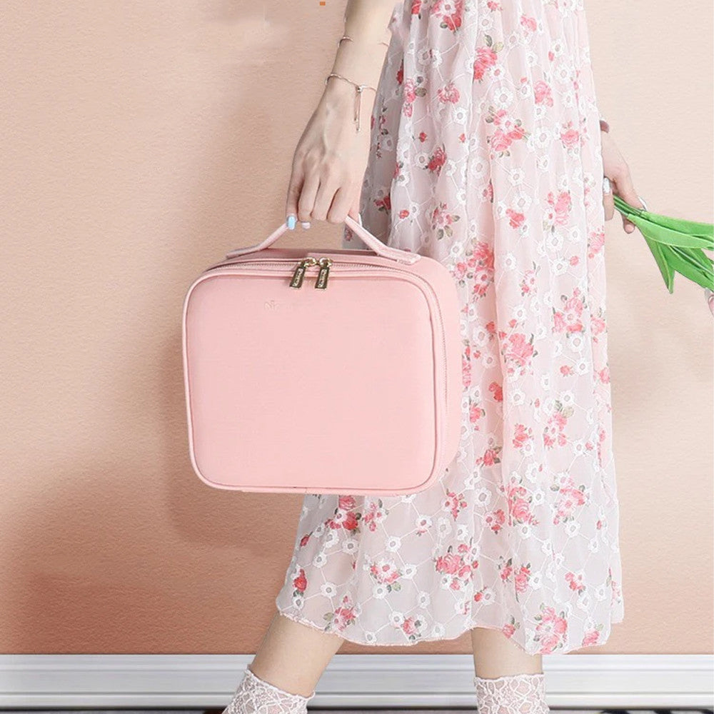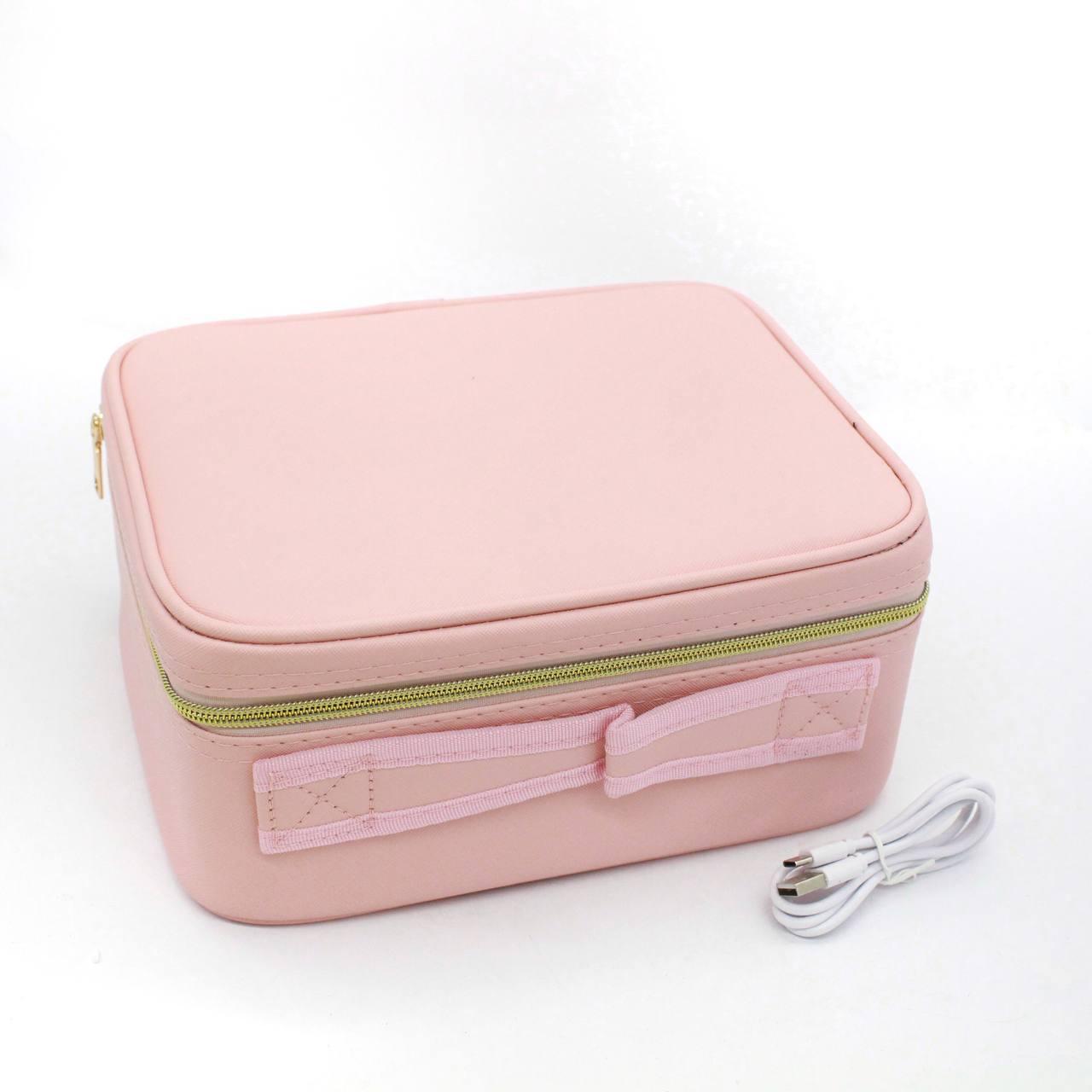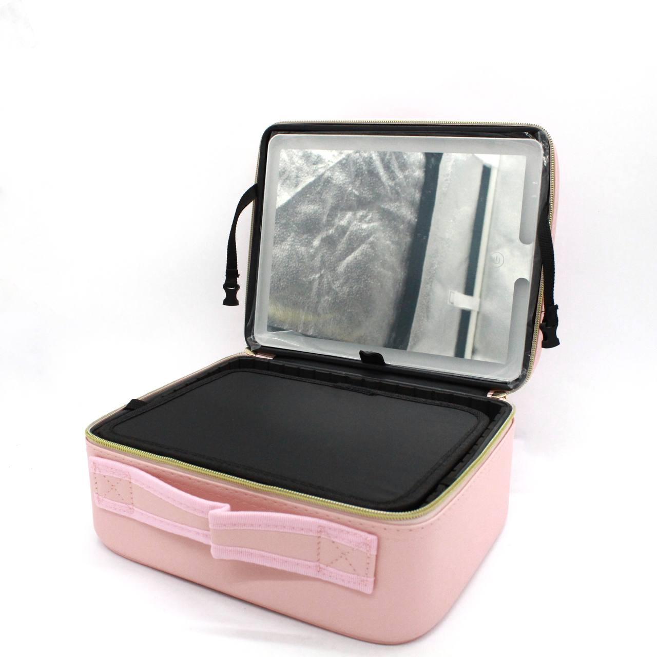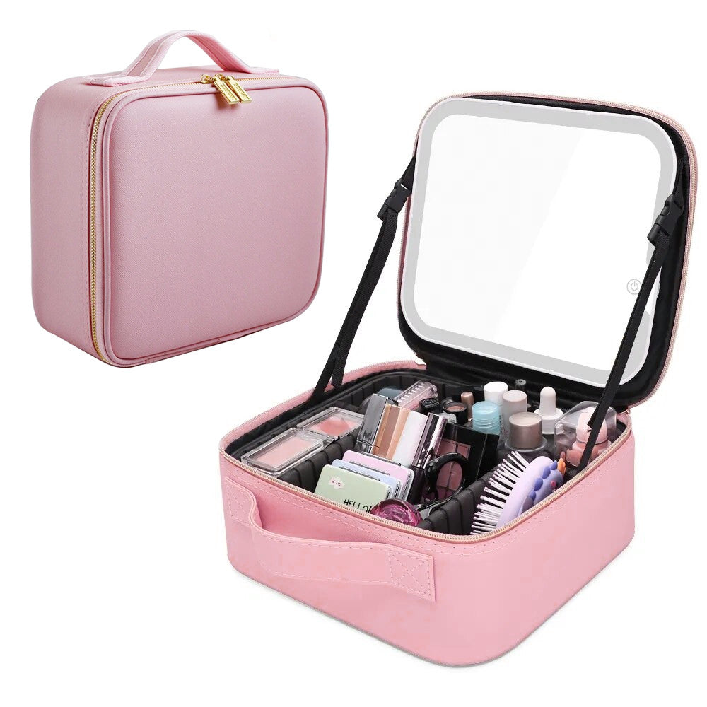 Дорожня косметичка з LED дзеркалом (26х23х11см), Рожева / Органайзер валіза для косметики