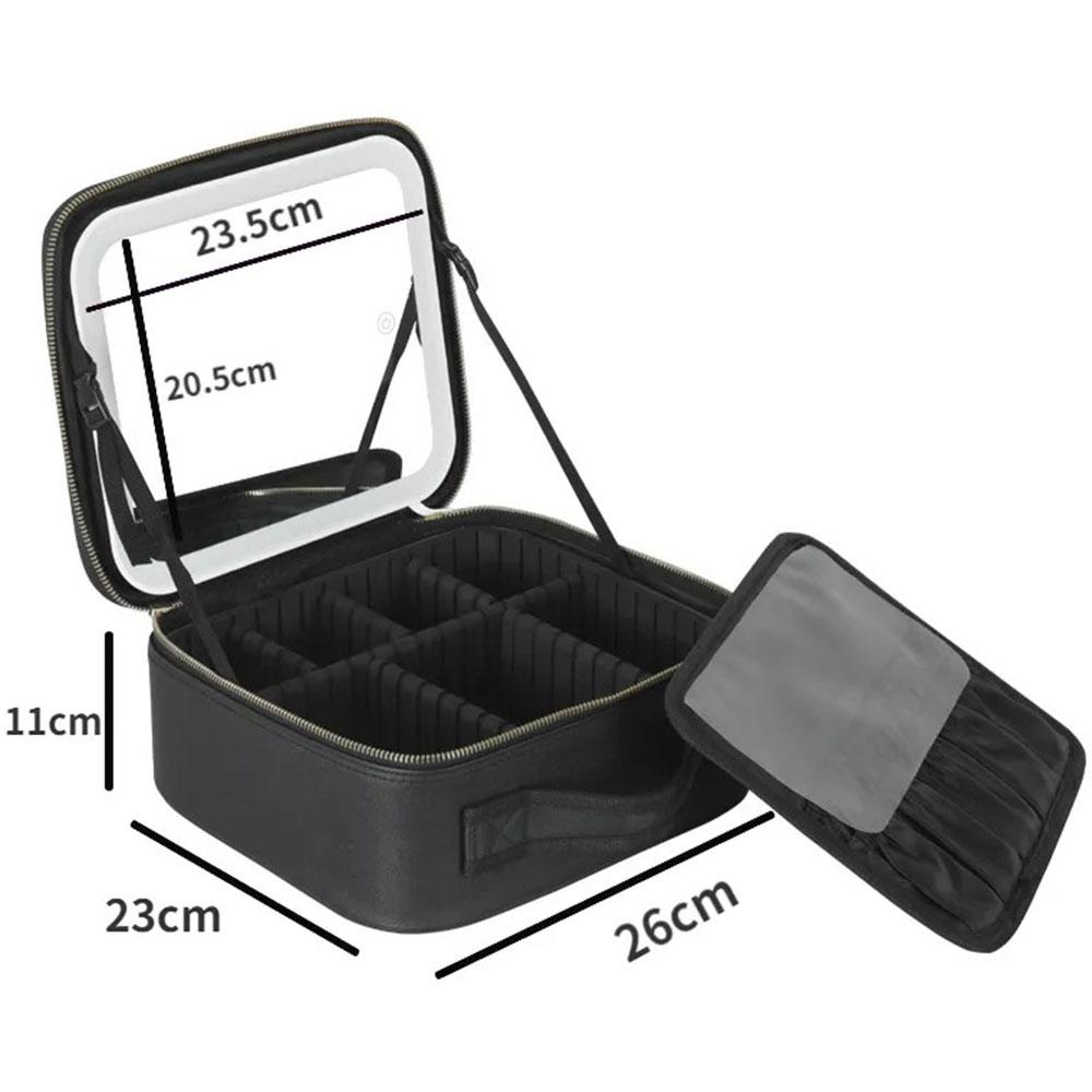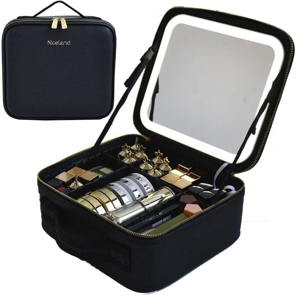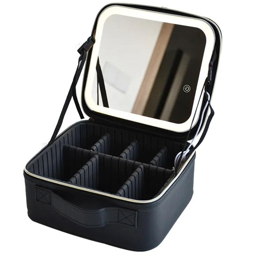 Дорожня косметичка з LED дзеркалом (26х23х11см), Чорна / Органайзер валіза для косметики