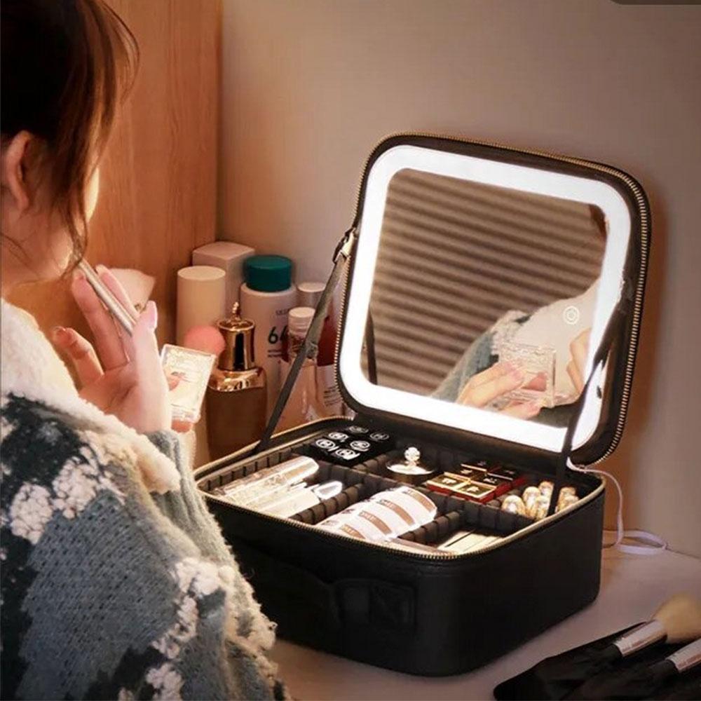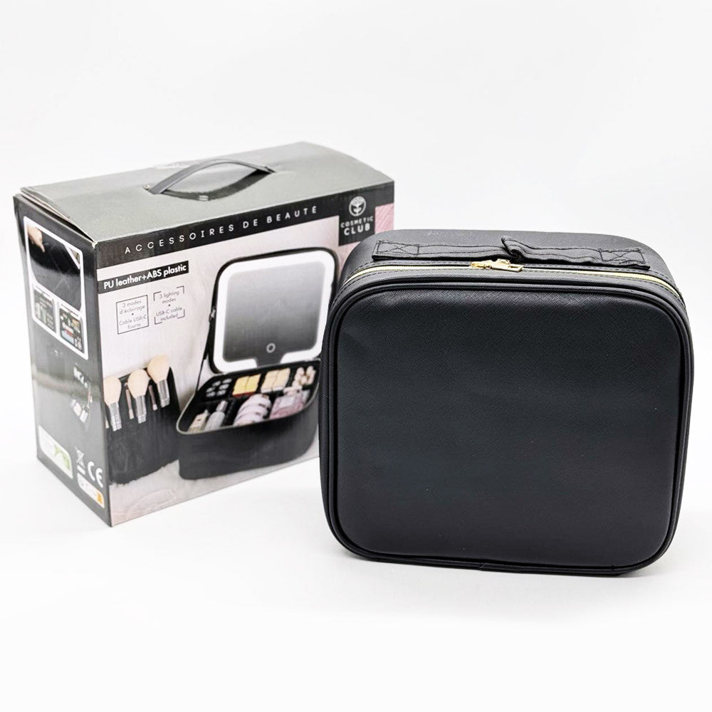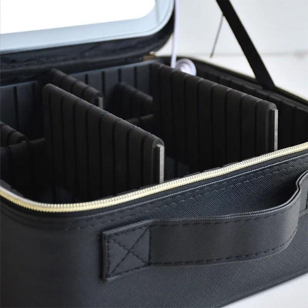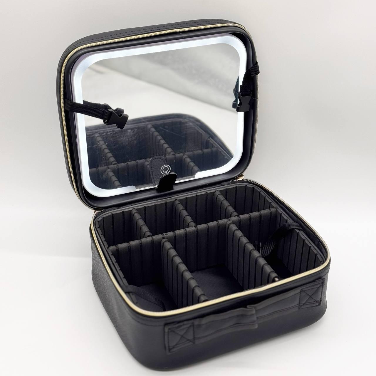 Дорожня косметичка з LED дзеркалом (26х23х11см), Чорна / Органайзер валіза для косметики