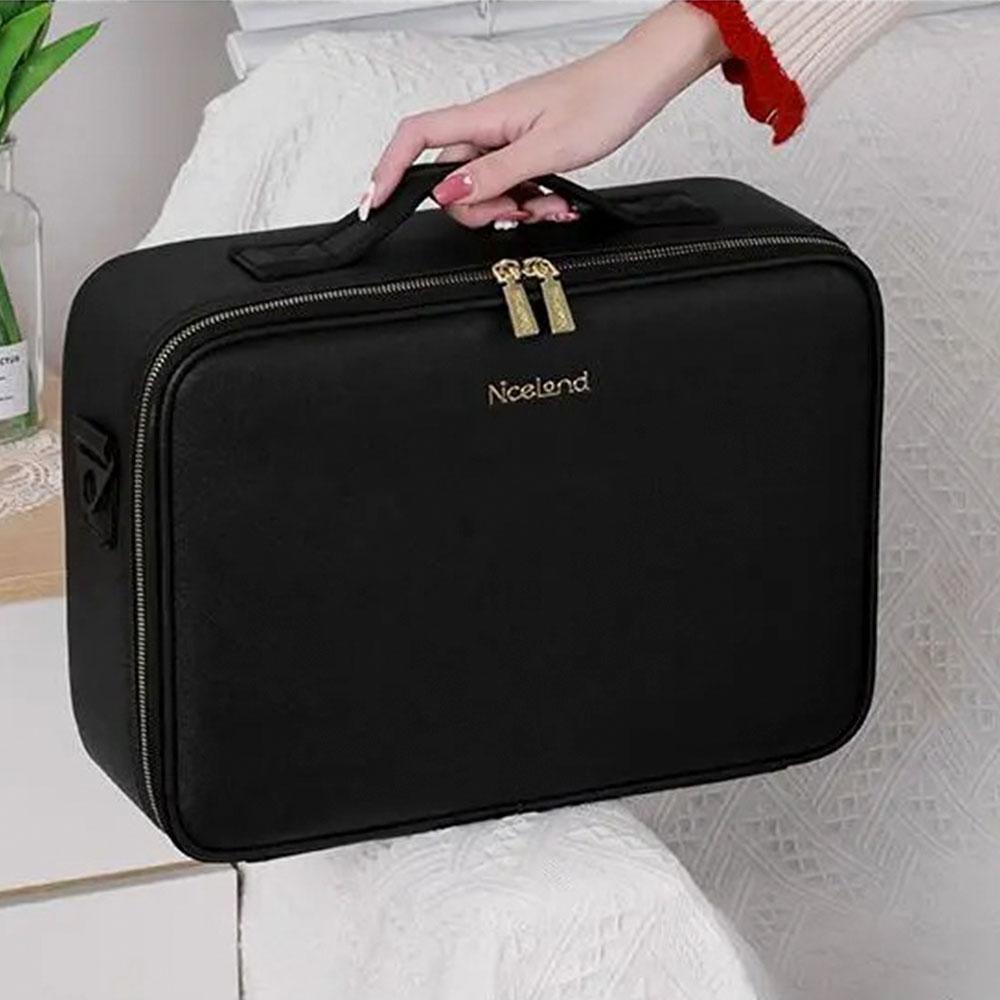Косметичка для макіяжу виготовлена з високоякісної нейлонової тканини, що робить її водонепроникною, дуже міцною та легкою, ніж інші професійні косметички. Металева двостороння блискавка гладка, легко відкривається та закривається.