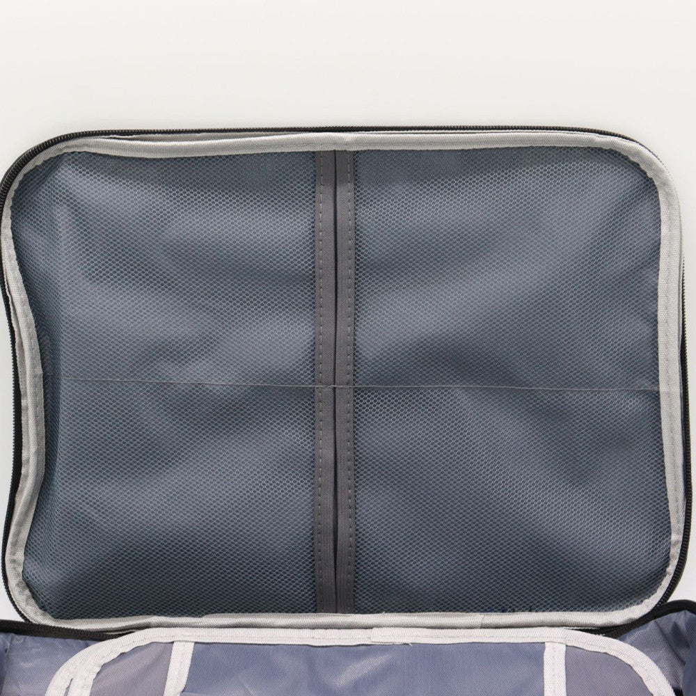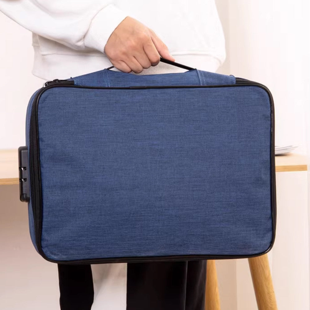 Цей водонепроникний органайзер для документів спроектований для вміщення стопки документів формату А4 і також оснащений напівпрозорими кишенями для сіток, призначеними для зберігання кредитних карт, флешок і адаптерів. Органайзер виготовлений з якісного та міцного текстилю та закривається надійною блискавкою. Він має зручну ручку для перенесення в руці, а також поясний ремінь, який дозволяє прикріпити сумку до ручки дорожньої валізи.