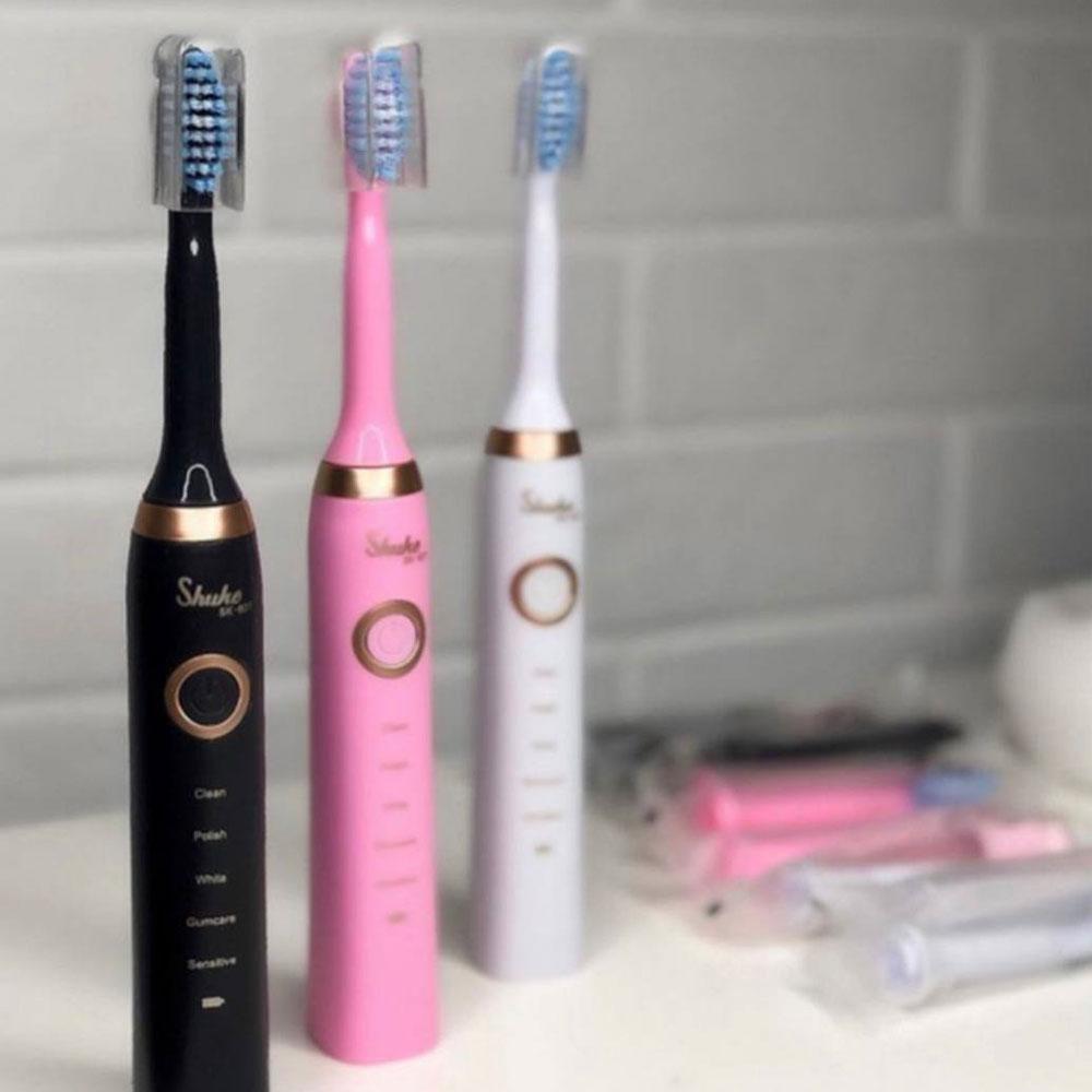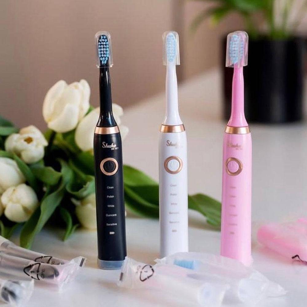 Електрична зубна щітка Shuke з 4-ма насадками дозволяє ретельно і дбайливо чистити зуби і доглядати за порожниною рота. Технологія освітлення для білих зубів – допомагає видалити пігментований зубний наліт з поверхні емалі завдяки поліруючій чашці.