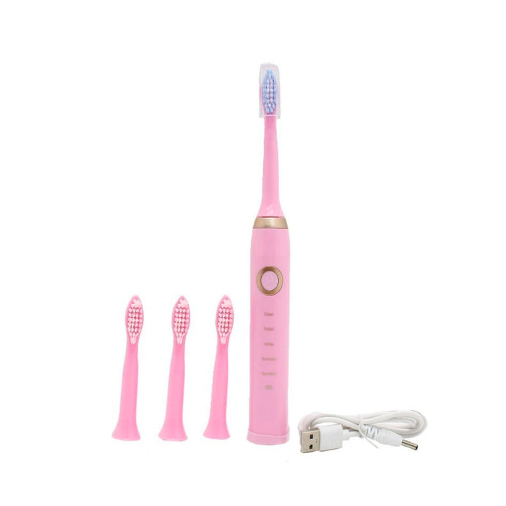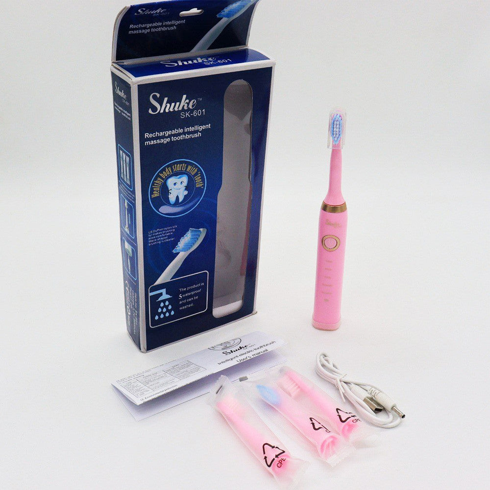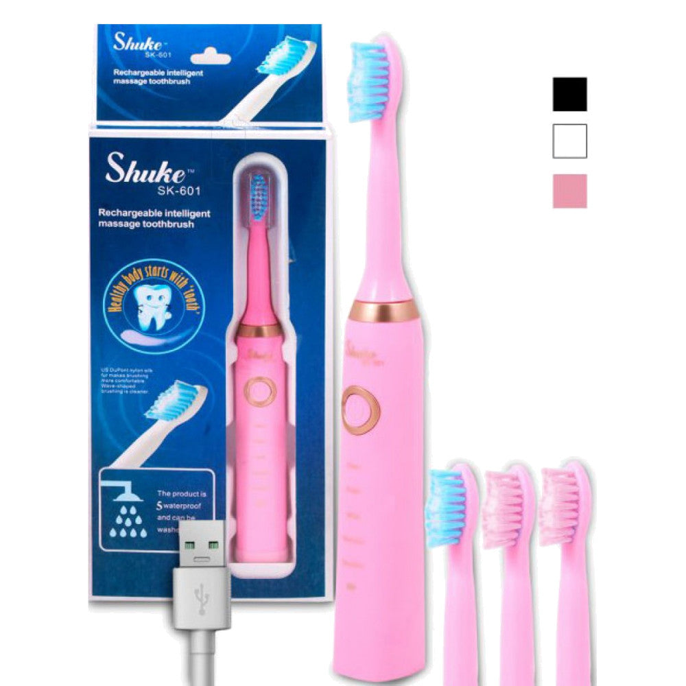 Електрична зубна щітка Shuke з 4 насадками Рожева / Акумуляторна зубна щітка / Зубні щітки