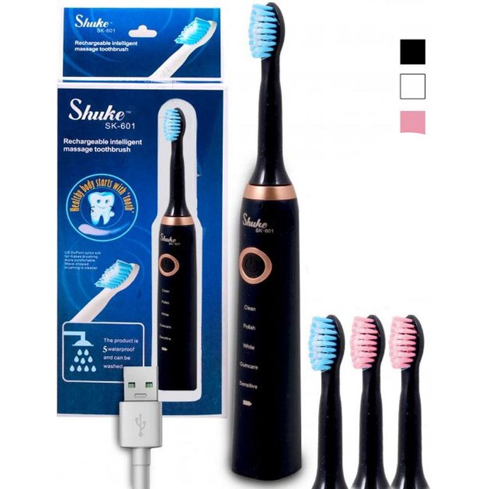 Електрична зубна щітка Shuke з 4 насадками Чорна / Акумуляторна зубна щітка / Зубні щітки