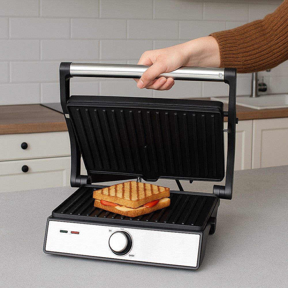 Притискний механізм та можливість відкриття пластин на 180 градусів роблять експлуатацію максимально зручною. Ви можете готувати продукти як з одного боку, так і використовувати пристрій як повноцінну сковороду-гриль із двома робочими поверхнями. Це збільшує обсяг приготування та прискорює процес. Гриль оснащений індикаторами нагріву та роботи, що робить використання простим та інтуїтивно зрозумілим. Вам не доведеться гадати, коли прилад готовий до роботи — візуальна підказка вирішить все за вас.
