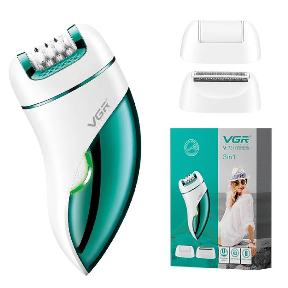 Епілятор жіночий акумуляторний 3в1 з USB, VGR V-731 / Бездротовий електроепілятор / Депілятор для тіла та ніг