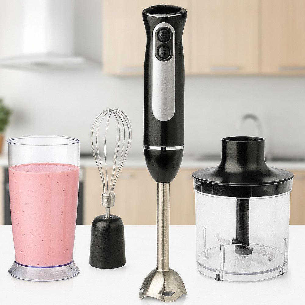 Насадка капучинатор дозволяє приготувати ідеальну пінку для кави або інших напоїв, а віночок ідеально підходить для збивання яєць, вершків та інших інгредієнтів. Чаша та стакан, що входять у комплект, роблять процес змішування та подачі ще зручнішим, дозволяючи вам готувати й одразу подавати напої після приготування. Усі насадки легко змінюються та миються, що спрощує обслуговування пристрою.