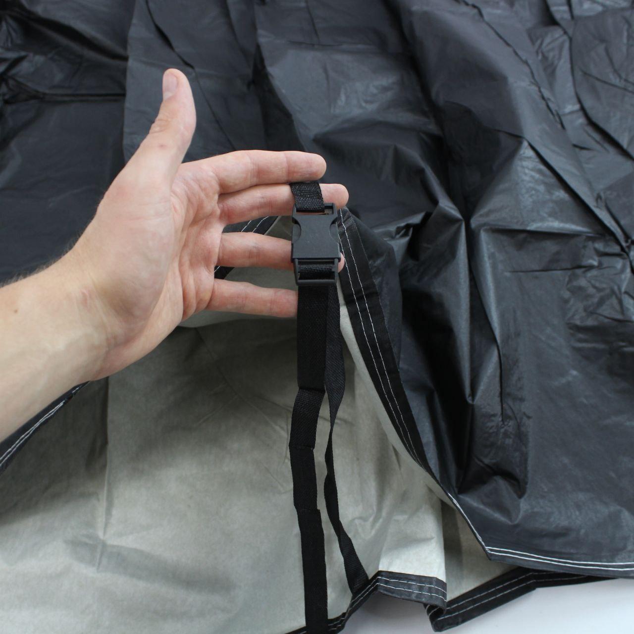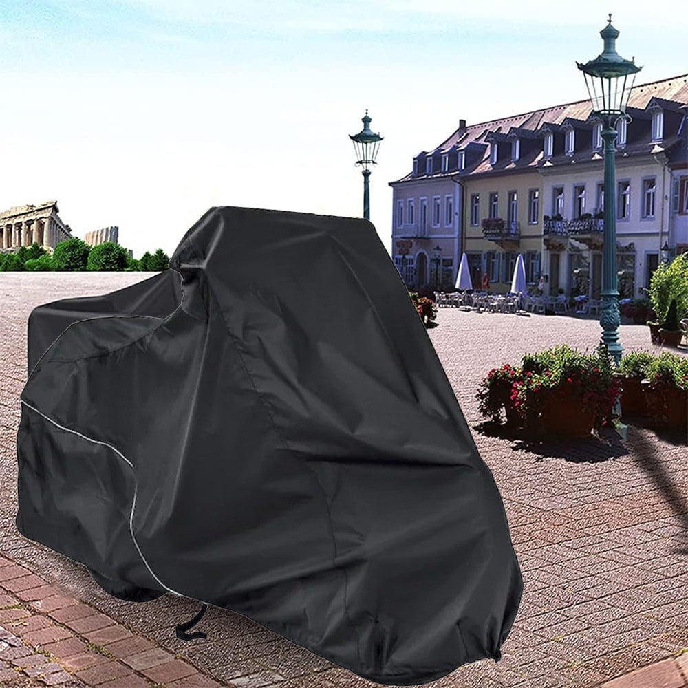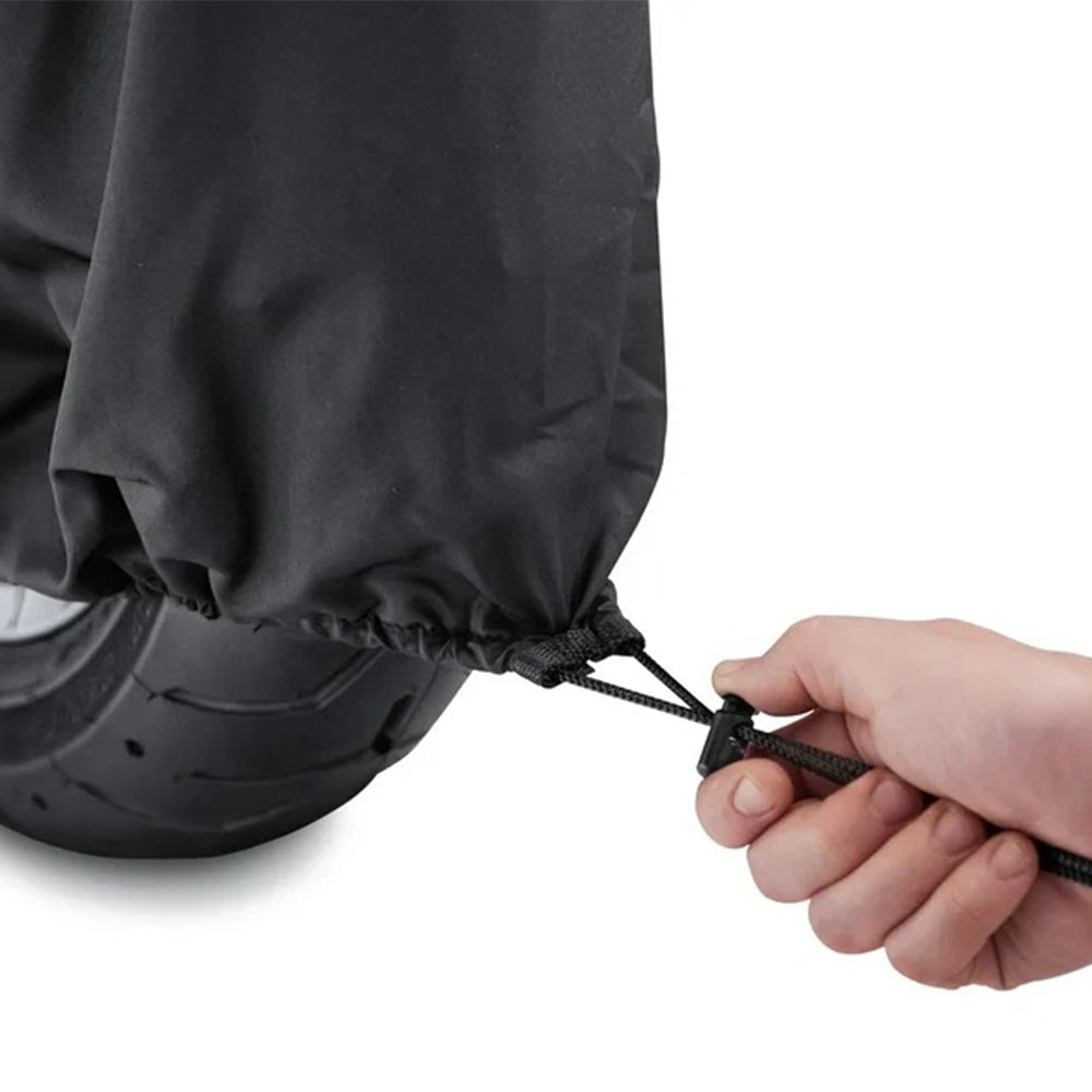 Чохол для мотоцикла надає надійний захист вашому транспортному засобу від дощу, снігу та шкідливого впливу ультрафіолетових променів. Завдяки вбудованим вентиляційним отворам забезпечується постійна циркуляція повітря, що допомагає зменшити накопичення вологи під чохлом, запобігаючи тим самим корозії металевих частин. Внутрішні термостійкі панелі додають додатковий захист.