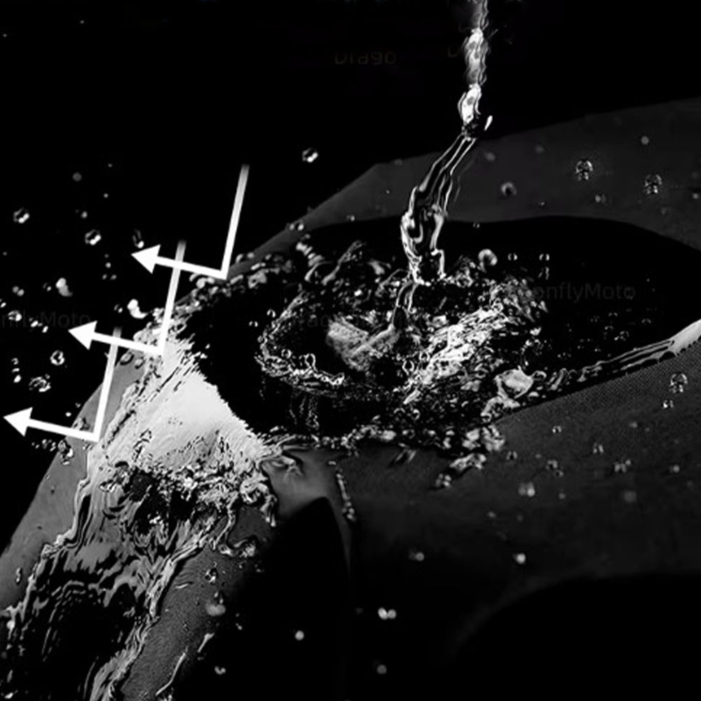 Додатковий чохол для зберігання значно спрощує процес пакування чохла, коли він тимчасово не використовується, забезпечуючи порядок та зручність. Регульовані шнурки та ремінь на рівні живота забезпечують стійку фіксацію чохла на мотоциклі, мінімізуючи можливість його здуття на сильному вітрі. Світловідбивна окантовка, передбачена в конструкції чохла, підвищує його видимість у темну пору доби, що є важливим фактором безпеки.