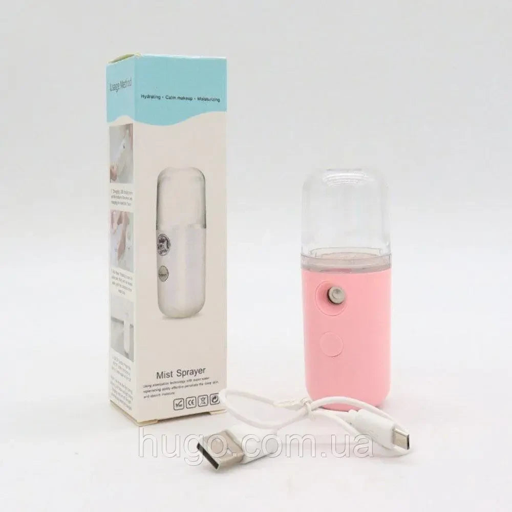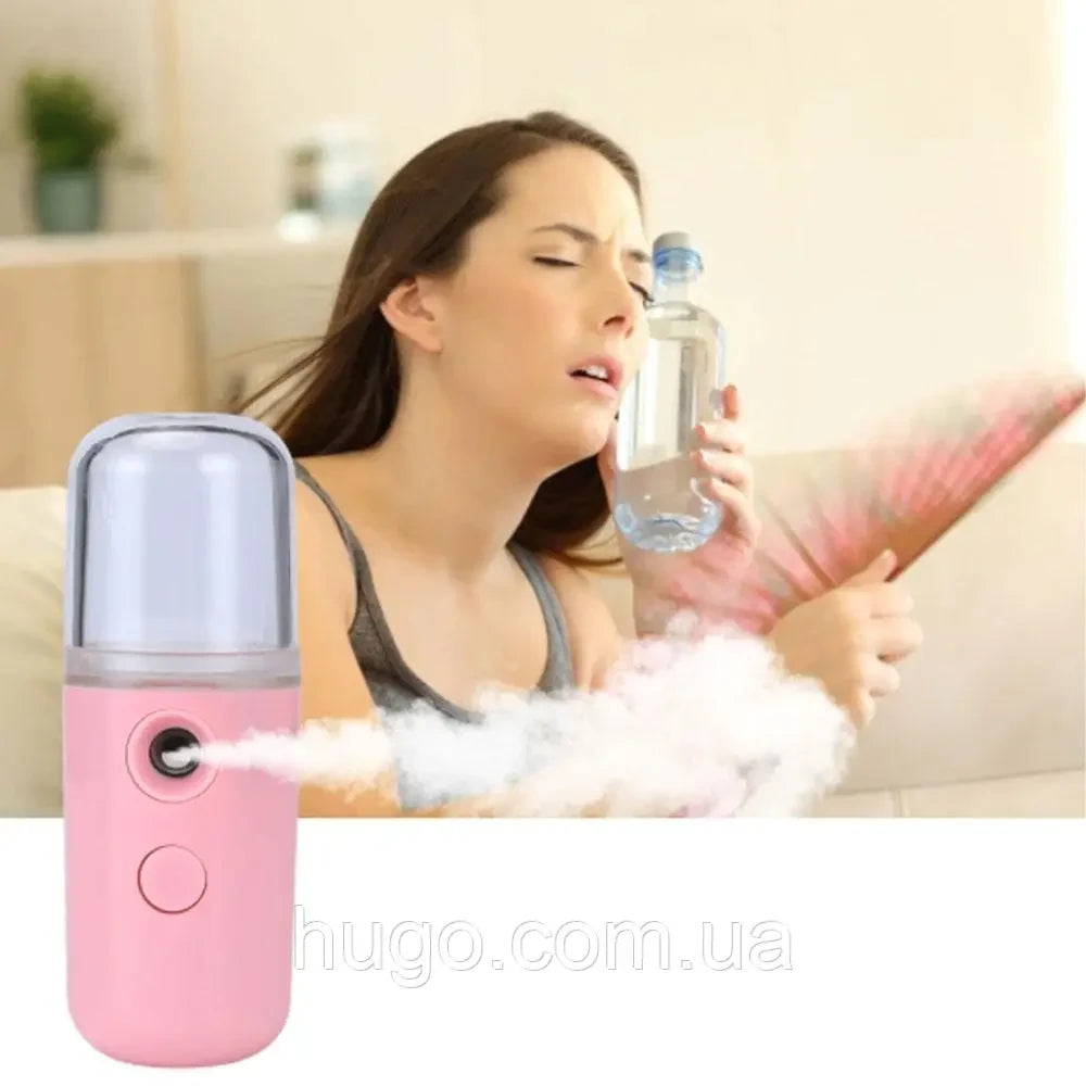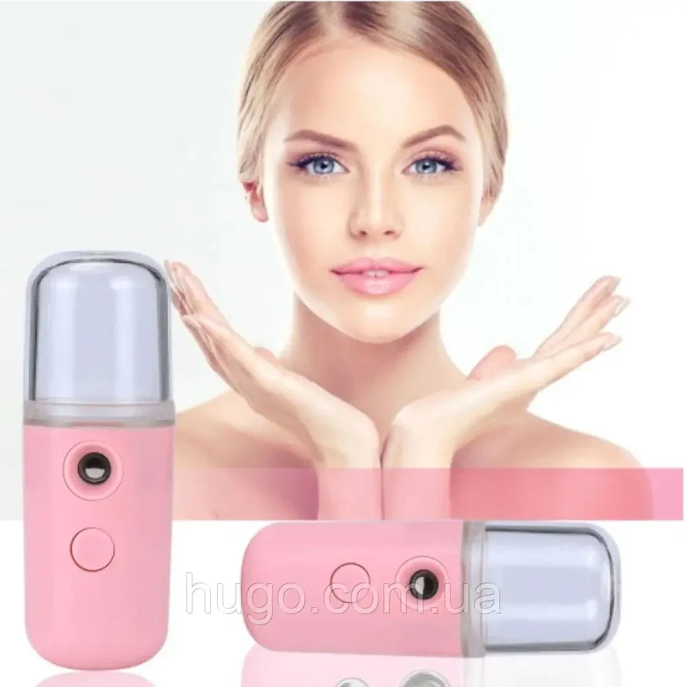 Зволожувач для шкіри обличчя 30 мл ультразвуковий Nano Mist, Рожевий / Портативний нано спрей