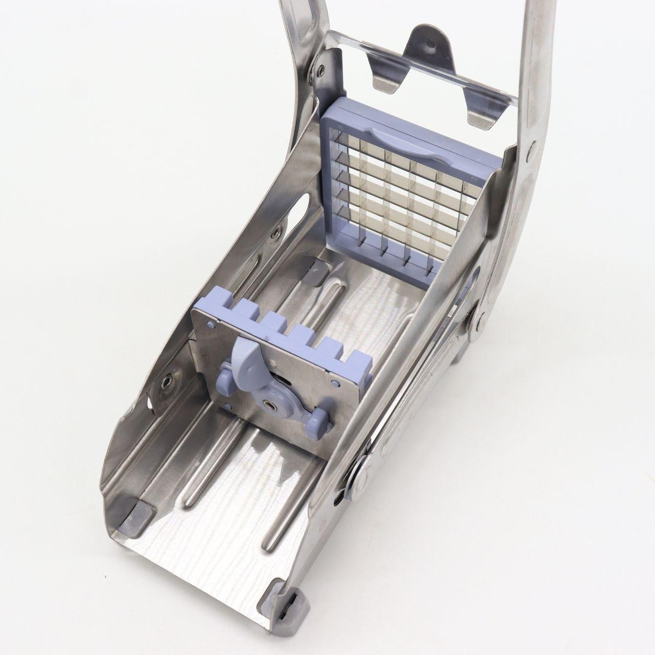 Potato Chipper дозволяє нарізати потрібну кількість картоплі для фрі або овочів для рагу. Ви можете самостійно регулювати величину нарізки за допомогою змінних ґрат-насадок. У пристрої використовуються ножі з високоякісної сталі, завдяки чому нарізка виходить швидко та легко.