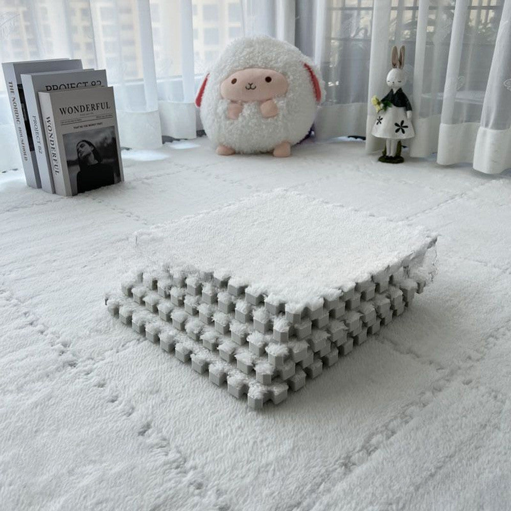 Килимок-пазл з плюшевим покриттям, 10 деталей (30х30см), Сірий / М'який пазл для підлоги / Дитячий килимок-пазл