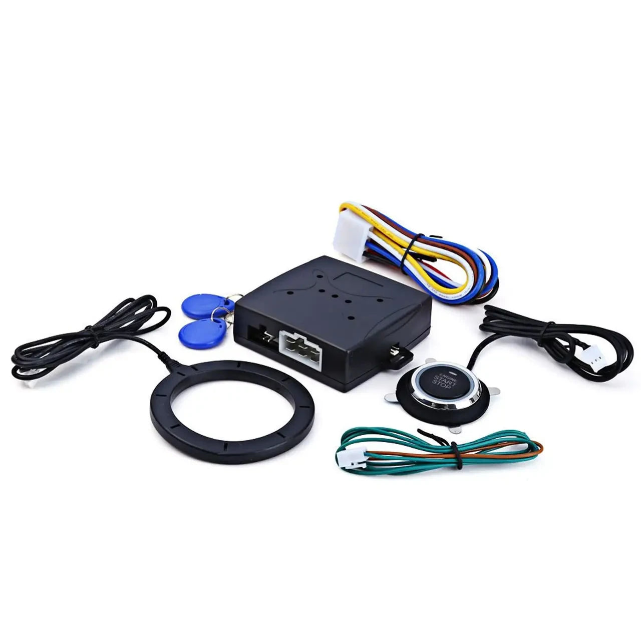 Якщо запуск двигуна не вдався з короткого натискання на кнопку старт стоп, при повторному запуску утримуйте педаль гальма та кнопку до повного запуску двигуна. Кнопка старт стоп активується лише після зчитування “RFID-мітки”. Підключення проводів здійснюється за схемою в інструкції.