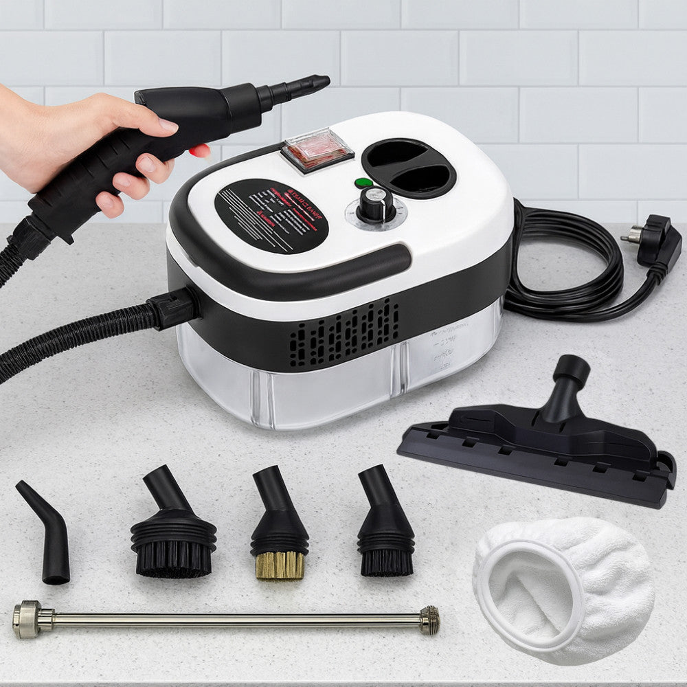 Компактний пароочисник для дому 2500Вт, 1.2л + 7 насадок / Парогенератор для прибирання / Паровий очищувач